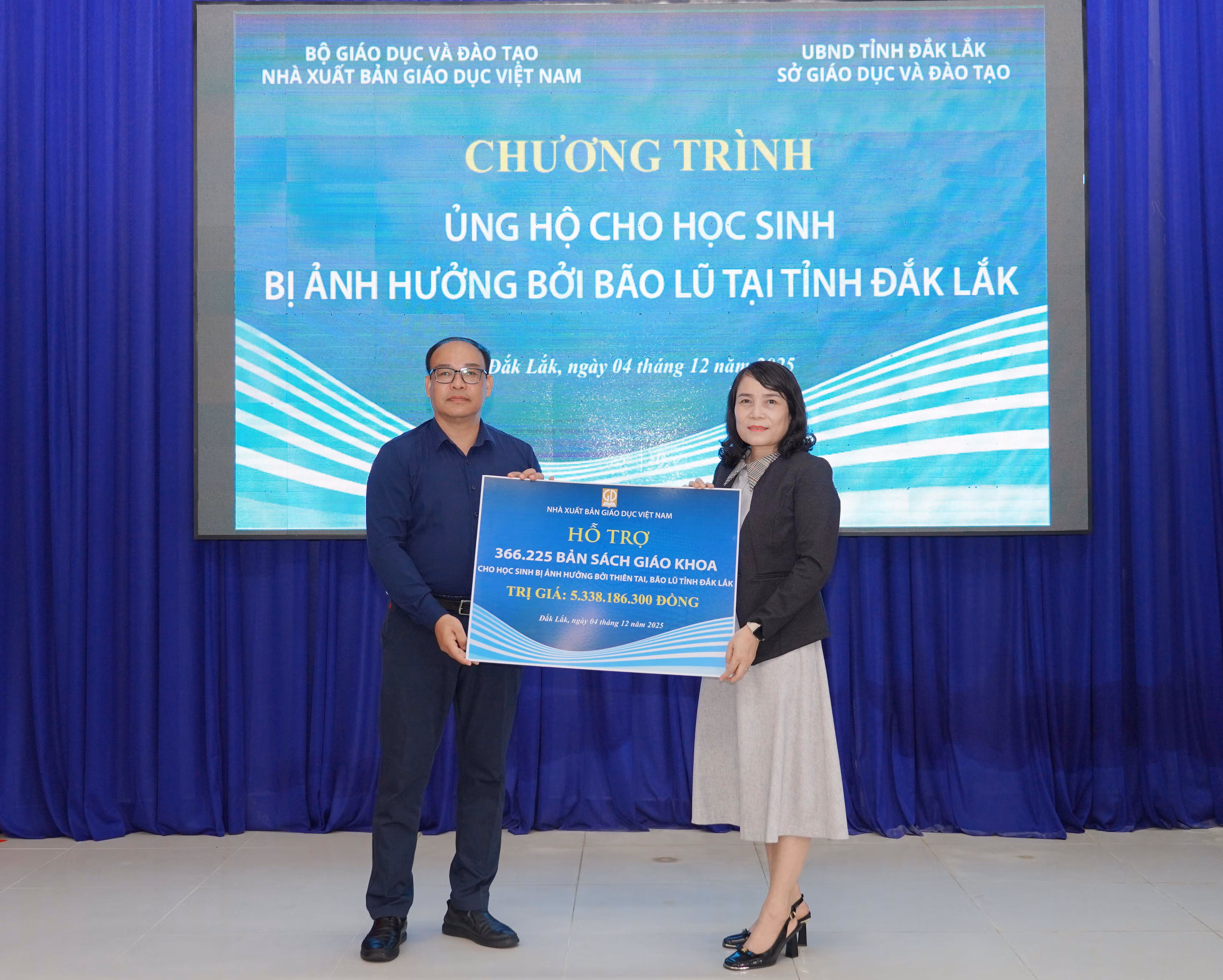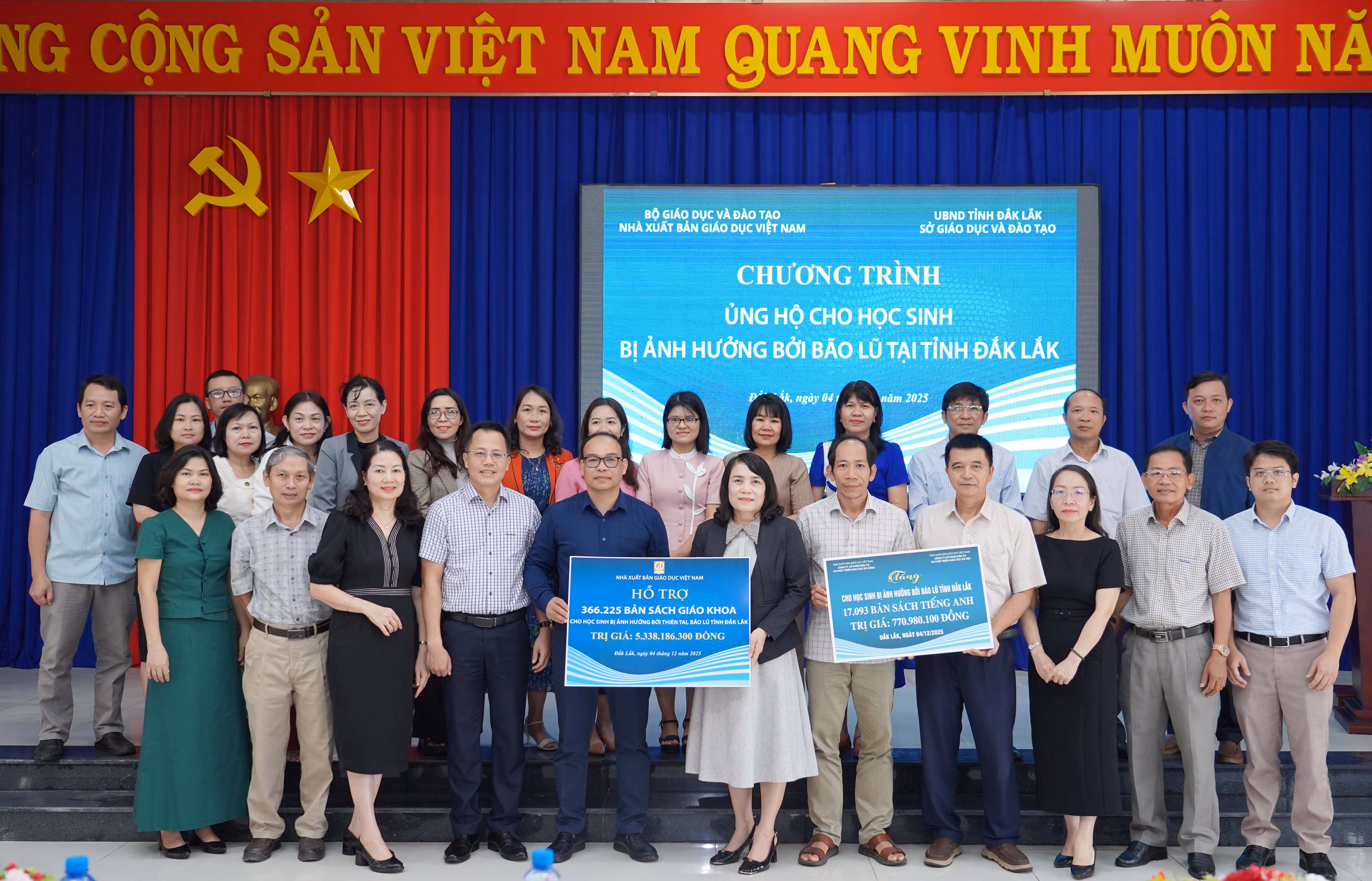 Ngày 04/12/2025, tại Trung tâm Giáo Dục Nghề Nghiệp - Giáo Dục Thường Xuyên (TTGDNN-GDTX), phường Bình Kiến, tỉnh Đắk Lắk, Nhà xuất bản Giáo dục Việt Nam (NXBGDVN) và các đơn vị thành viên đã trao tặng sách cho các trường học bị ảnh hưởng bởi thiên tai, mưa lũ, trên địa bàn tỉnh.