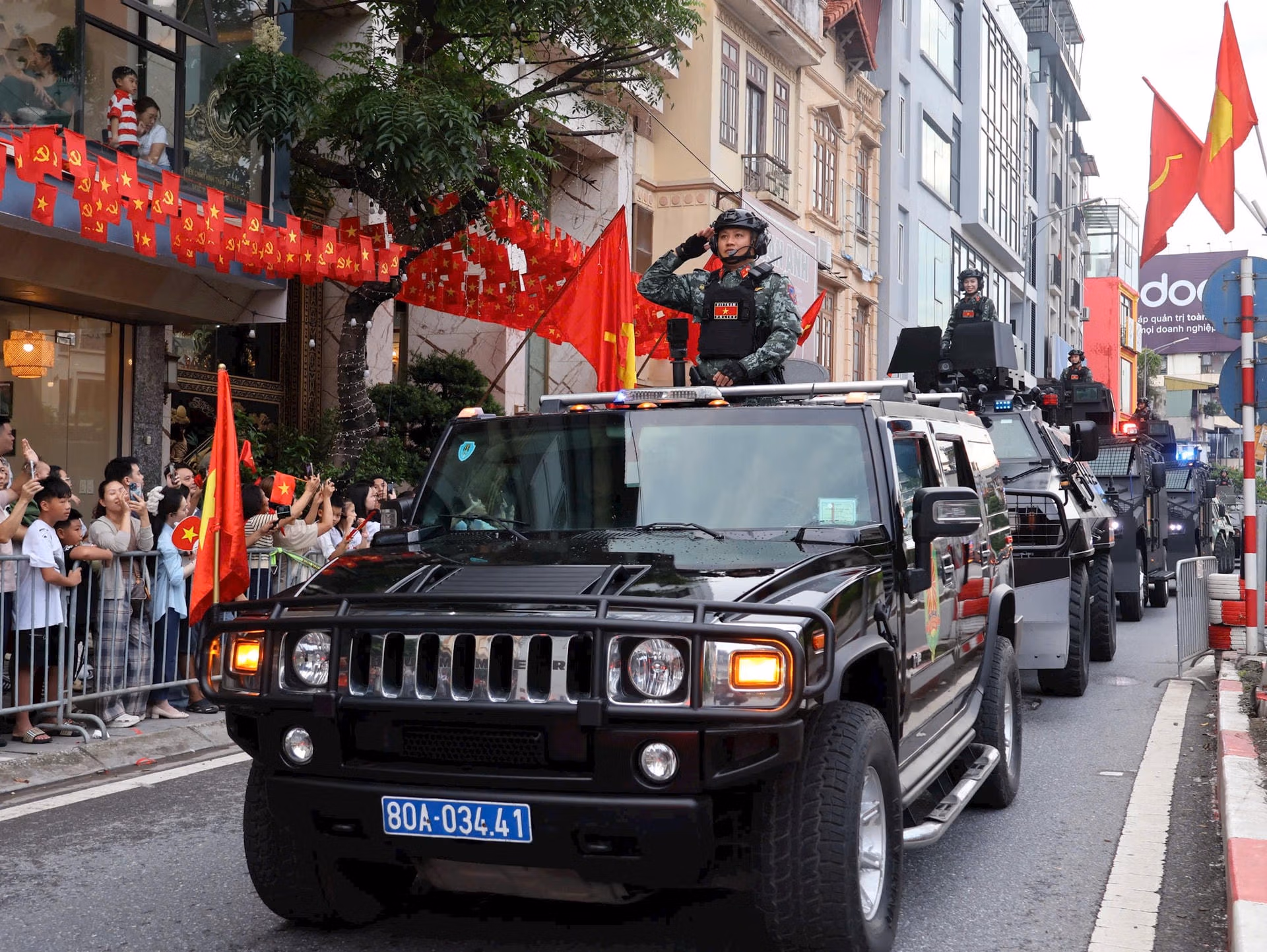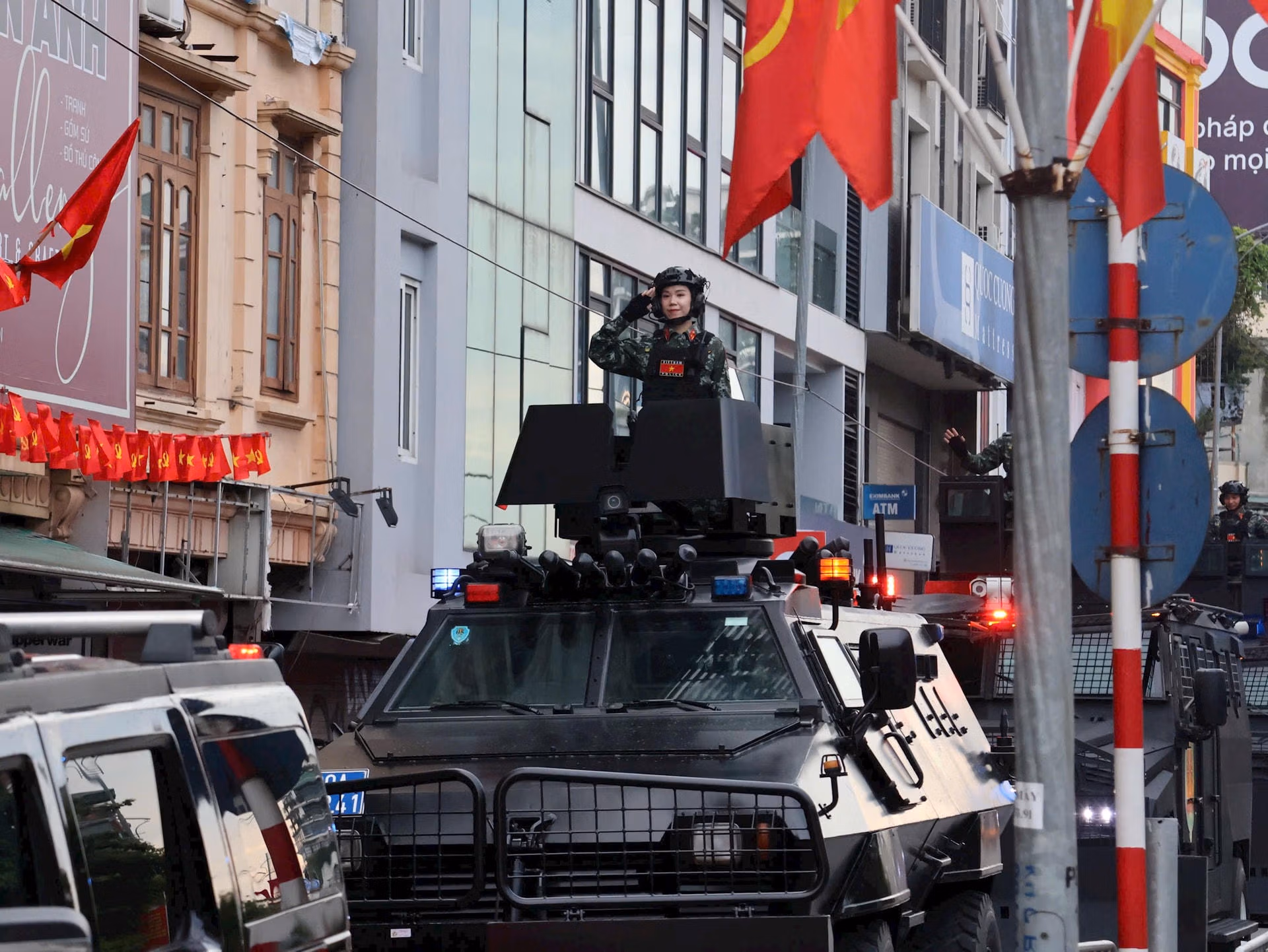 18h45. Cùng với sự xuất hiện của các vũ khí, khí tài quân sự, lễ diễu binh, diễu hành kỷ niệm 80 năm Cách mạng Tháng Tám và Quốc khánh 2/9 còn có sự góp mặt của dàn xe đặc chủng và khí tài hiện đại của lực lượng Công an nhân dân.