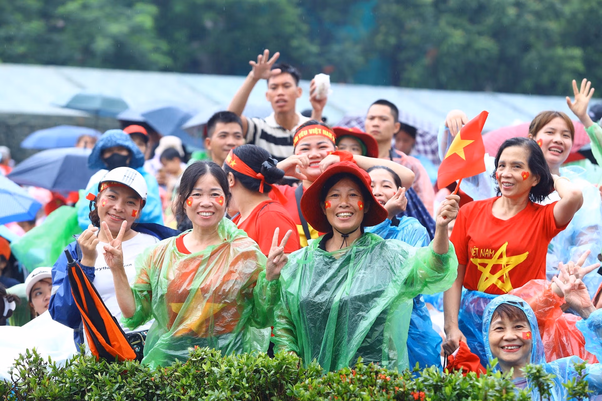 Người dân đội mưa chờ đón lễ sơ duyệt