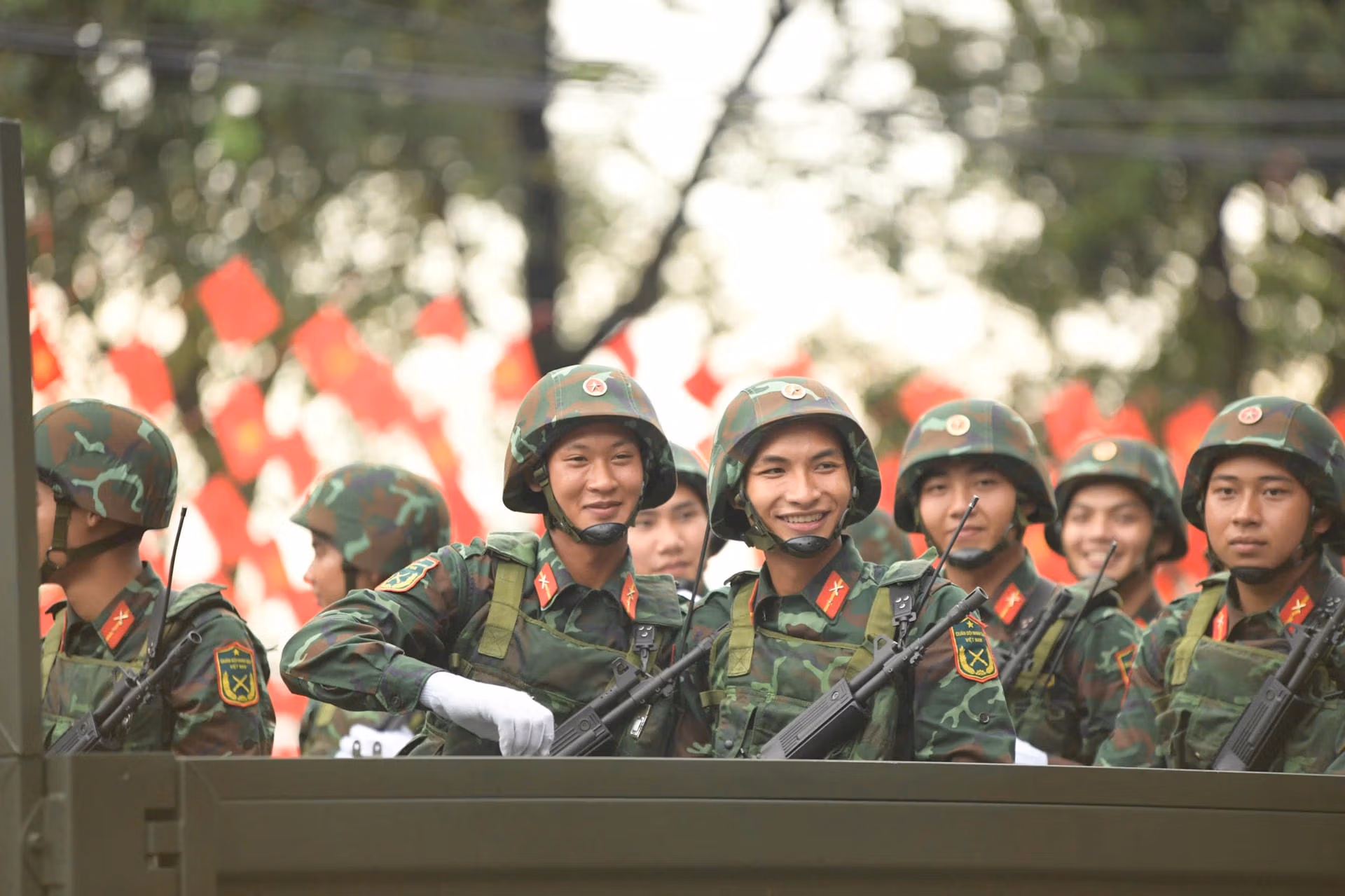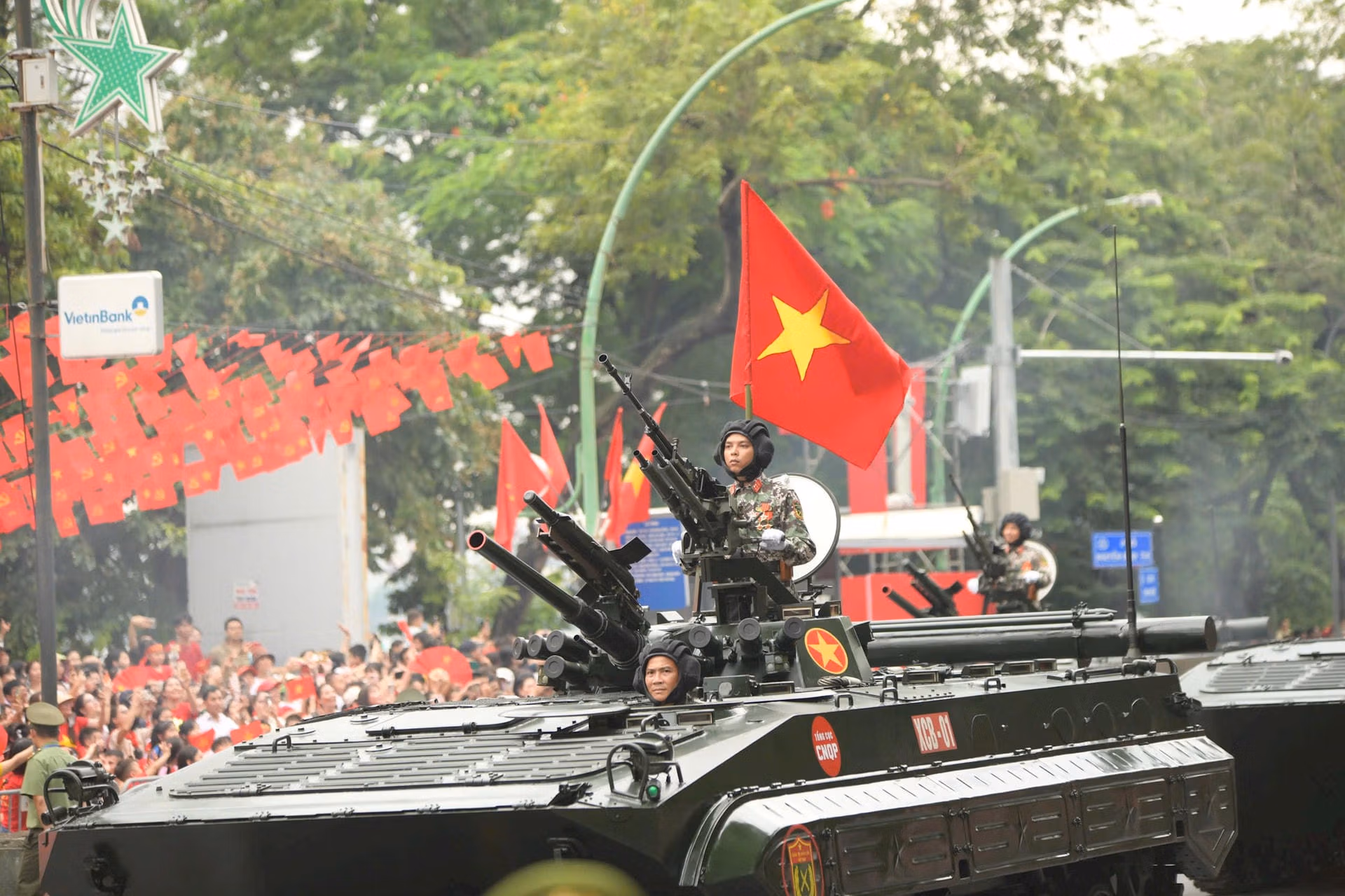 Nhân dân vui mừng đón chào đoàn diễu binh, khối xe pháo trên đường phố Hà Nội