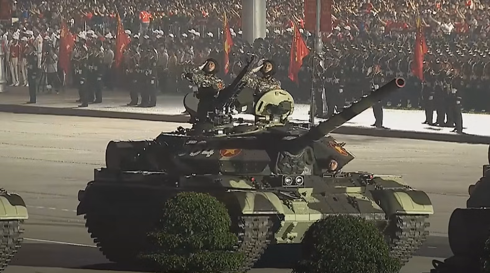 20h50. Sau các khối diễu binh của bộ đội và công an là màn phô diễn sức mạnh của Binh chủng Tăng - Thiết giáp anh hùng tái hiện khí thế hào hùng của những "pháo đài thép" đã và đang bảo vệ vững chắc Tổ quốc.
