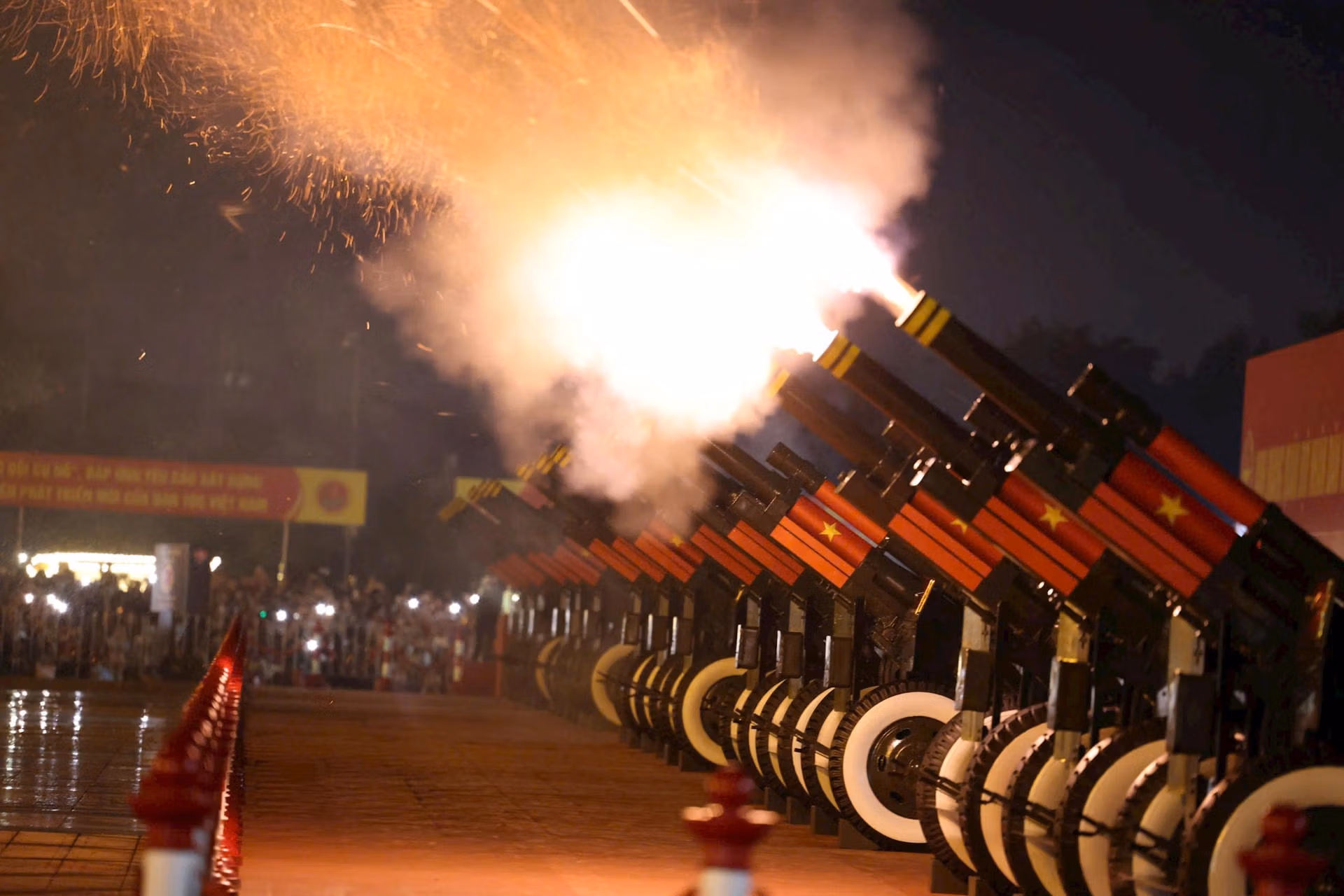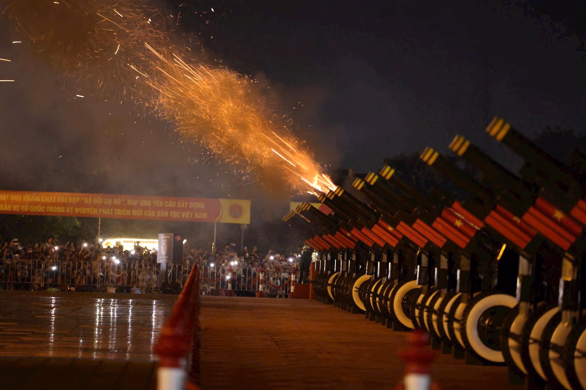 Tại Hà Nội, ngay trước sân vận động Mỹ Đình, 15 khẩu pháo lễ 105 mm sẽ đồng loạt khai hỏa, góp phần làm không khí đêm sơ duyệt thêm trang nghiêm, hùng tráng.