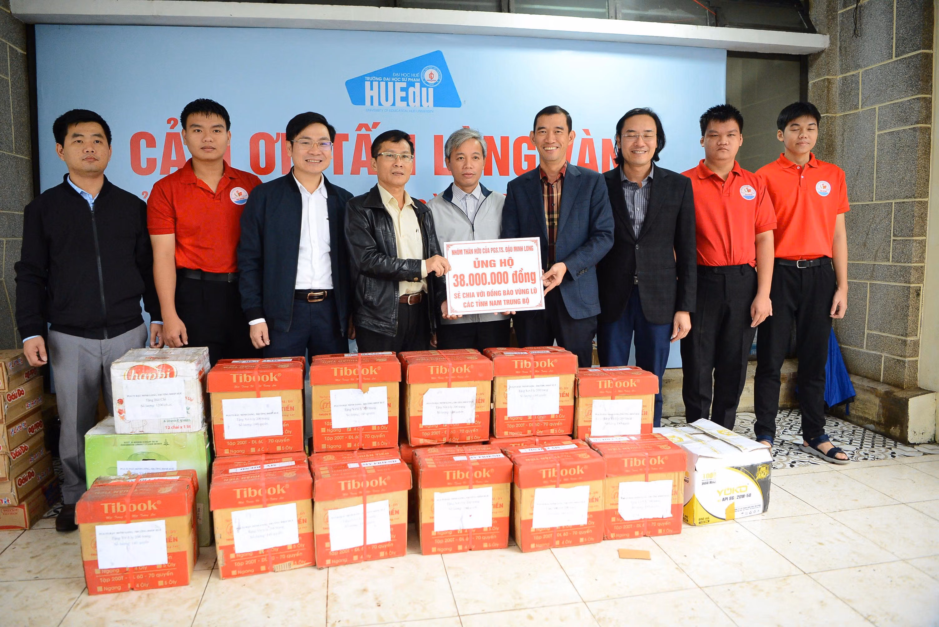 Tương tự, tại Trường Đại học Luật, Đại học Huế, với tinh thần tương thân, tương ái, hướng về người dân đang chịu thiệt hại nặng nề do thiên tai gây ra, nhà trường phát động toàn thể viên chức, người lao động cùng chung tay ủng hộ, hỗ trợ giúp đỡ người dân vượt qua giai đoạn khó khăn, sớm ổn định cuộc sống.