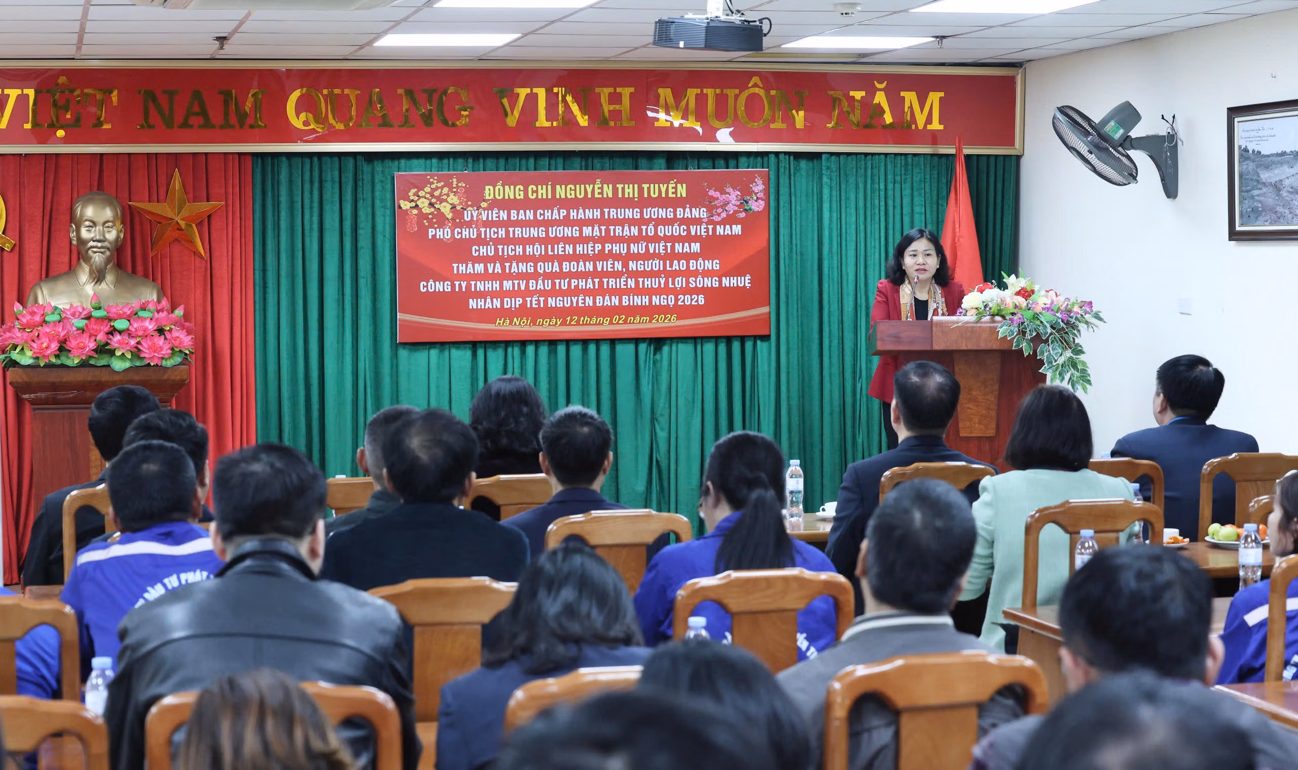 Chiều 12/2, nhân dịp Tết Nguyên đán Bính Ngọ 2026, bà Nguyễn Thị Tuyến - Ủy viên Trung ương Đảng, Phó Chủ tịch UBTƯ MTTQ Việt Nam, Chủ tịch Hội Liên hiệp Phụ nữ Việt Nam, đã đến thăm và tặng quà cán bộ, người lao động có hoàn cảnh khó khăn tại Công ty TNHH MTV Đầu tư phát triển Thủy lợi Sông Nhuệ (Hà Nội).