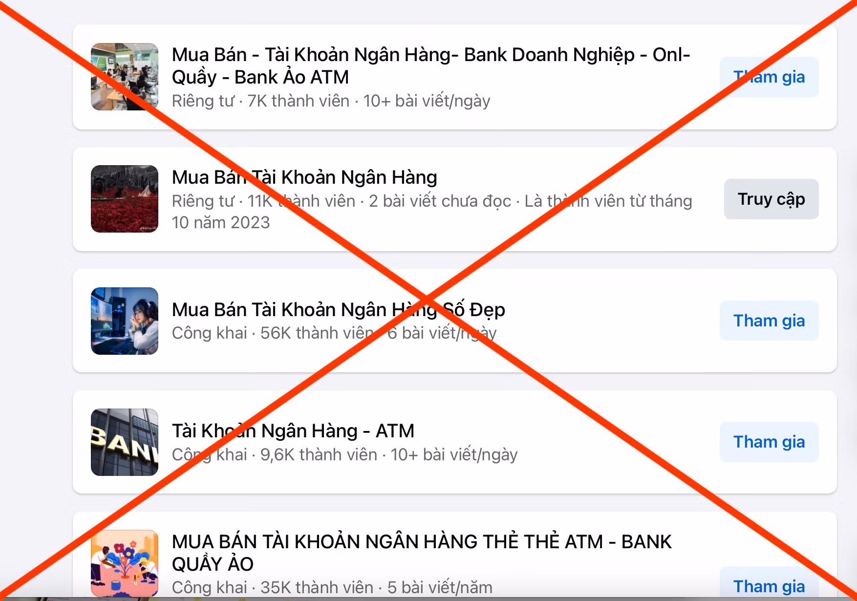 Theo chuyên gia an ninh mạng Ngô Minh Hiếu, đồng sáng lập dự án Chống lừa đảo (Chongluadao.vn), hiện nay trên các nền tảng mạng xã hội như Facebook, Telegram, Zalo, nhiều hội nhóm công khai rao bán tài khoản ngân hàng với giá từ vài trăm nghìn đến vài triệu đồng mỗi tài khoản.