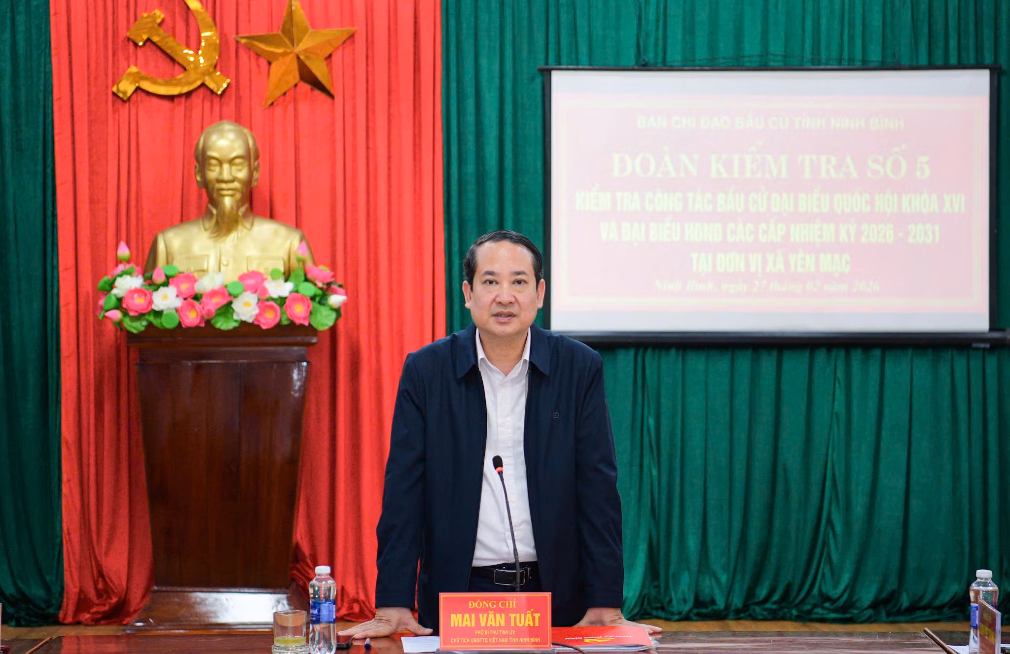 Ngày 27/2, Đoàn kiểm tra số 5 do ông Mai Văn Tuất - Phó Bí thư Tỉnh ủy, Chủ tịch Ủy ban MTTQ tỉnh, Phó Trưởng Ban Chỉ đạo cuộc bầu cử tỉnh làm trưởng đoàn đã kiểm tra công tác chuẩn bị bầu cử ĐBQH khóa XVI và đại biểu HĐND các cấp nhiệm kỳ 2026-2031 tại xã Yên Từ và Yên Mạc.