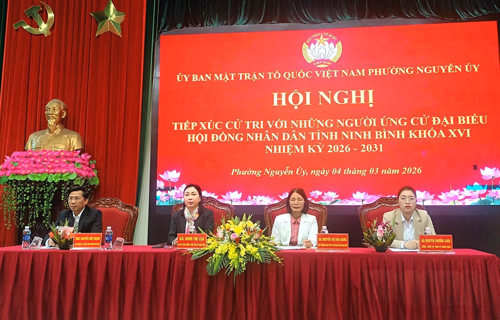 Chiều 4/3, tại phường Đông Hoa Lư, Ủy ban MTTQ tỉnh Ninh Bình tổ chức hội nghị tiếp xúc cử tri với những người ứng cử đại biểu HĐND tỉnh khóa XVI, nhiệm kỳ 2026-2031 thuộc đơn vị bầu cử số 8 với 8 ứng cử viên.