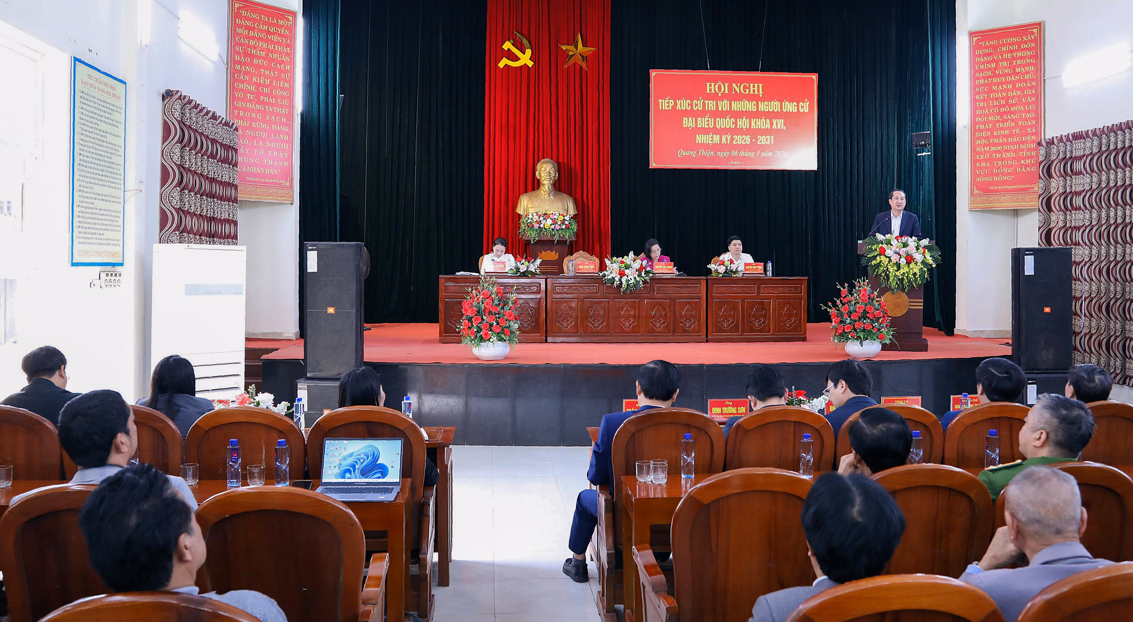 Ngày 6/3, Ban Thường trực Ủy ban MTTQ các xã Quang Thiện, Kim Sơn, Chất Bình tổ chức hội nghị tiếp xúc cử tri với những người ứng cử đại biểu Quốc hội (ĐBQH) khóa XVI tại đơn vị bầu cử số 4. Dự hội nghị có 2 ứng cử viên tiêu biểu là bà Nguyễn Thị Thanh - Phó Chủ tịch Quốc hội; ông Mai Văn Tuất - Phó Bí thư Tỉnh ủy, Chủ tịch Ủy ban MTTQ tỉnh... cùng 400 cử tri của 3 xã trên.