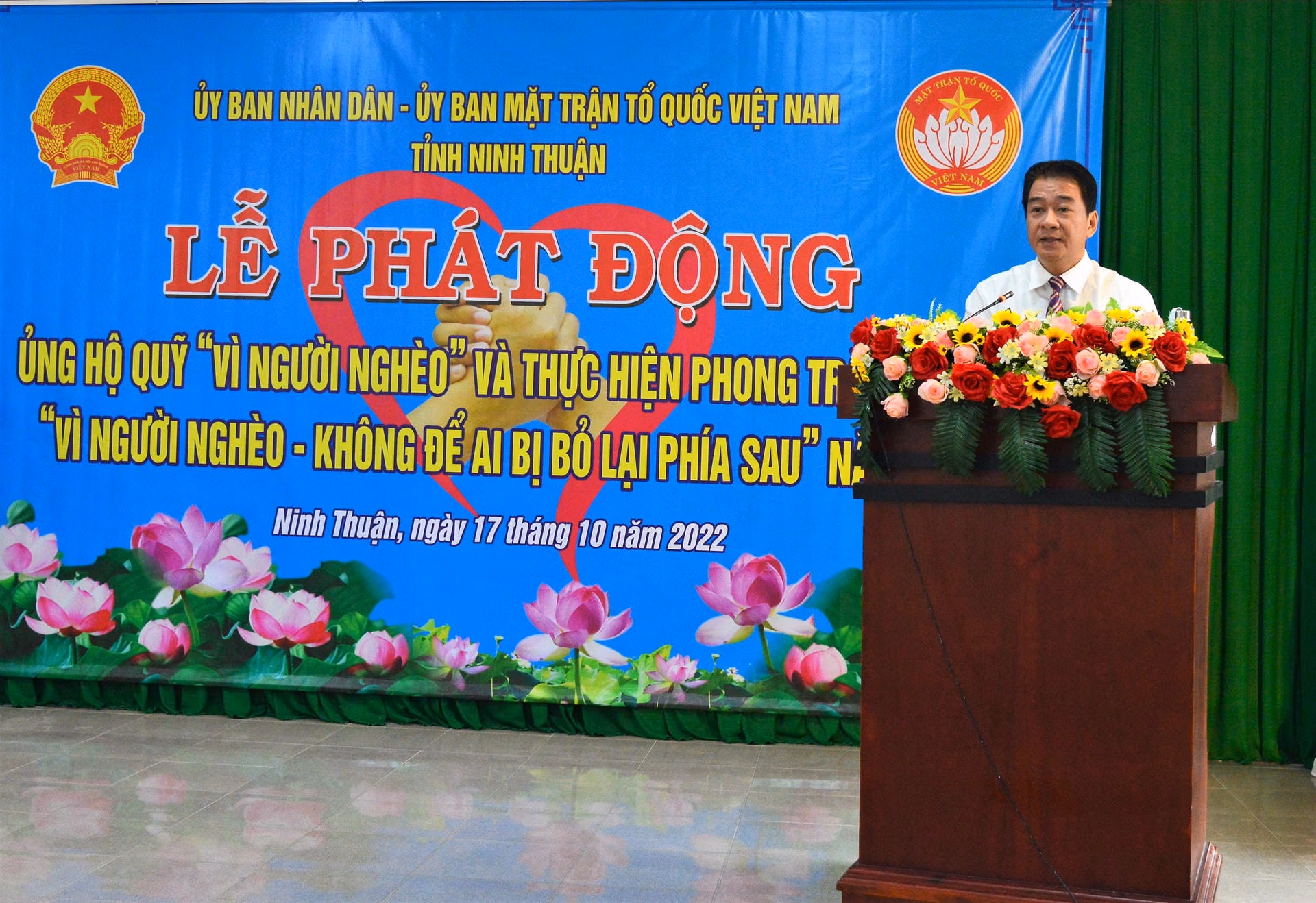 Ngày 17/10, UBND, Ủy ban MTTQ Việt Nam tỉnh Ninh Thuận, phối hợp tổ chức Lễ phát động ủng hộ Quỹ “Vì người nghèo” và thực hiện Phong trào thi đua “Vì người nghèo - Không để ai bị bỏ lại phía sau” năm 2022.
