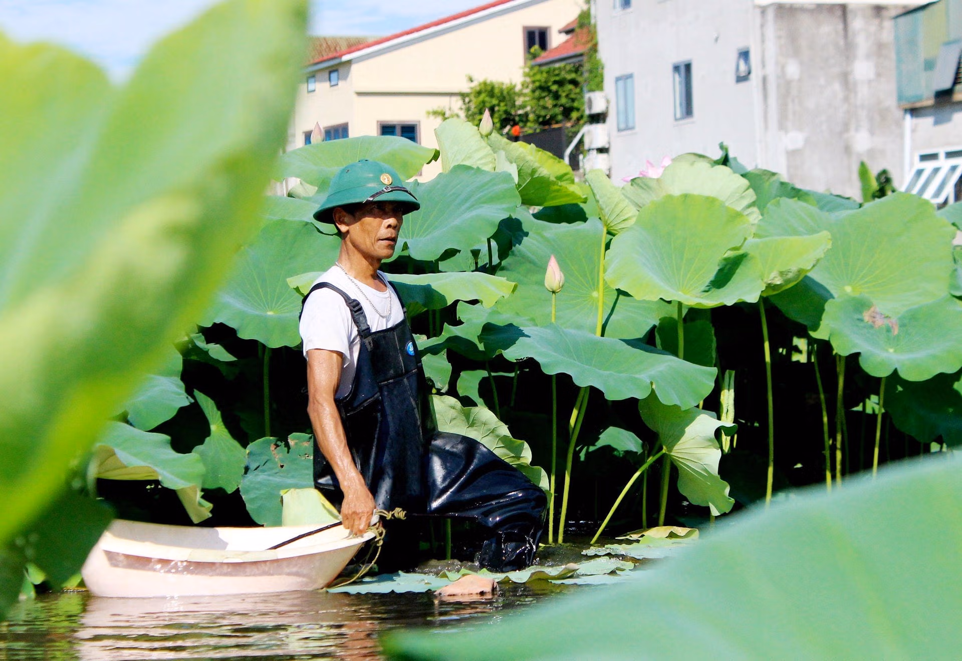 Nông dân Hà Tĩnh dầm mình dưới bùn thu hoạch ngó sen Thứ Năm 06/06/2024 15:08 (GMT+7) Những ngày này, ruộng sen của người dân Hà Tĩnh đang vào vụ thu hoạch ngó sen. Bên cạnh thu hoạch ngó, ruộng sen của những nông dân còn cho thu hoạch hoa, lá, củ... mang lại thu nhập cao. Đầu năm 2023, nhận thấy vùng đất trũng tại địa phương phủ đầy bèo tây, hàng chục năm không thể canh tác, ông Nguyễn Duy Đại (trú thôn Đoài Thịnh, xã Thạch Trung, thành phố Hà Tĩnh) đã mạnh dạn thuê lại đất của nhiều hộ dân để áp dụng mô hình trồng sen. Ảnh: Cẩm KỳĐể việc canh tác sen thuận lợi, ông Đại đã tích cực học hỏi những kinh nghiệm từ những người đi trước. Sen là loại cây rất dễ trồng, sức sinh trưởng mạnh mẽ và thích nghi tốt với thổ nhưỡng địa phương. Ảnh: Cẩm KỳTrao đổi với Báo Đại Đoàn Kết, ông Nguyễn Duy Đại cho biết, đối với sen lấy ngó, quá trình trồng sen phải liên tục chú ý cải tạo đất ruộng cho tơi xốp, bón phân theo lượng định kỳ, các cây sen trồng cách nhau khoảng 3m. Ngoài ra, bề mặt ao phải giữ đủ lượng nước tiêu chuẩn, việc xử lý các lá sen hư hỏng, tạo độ thoáng cho ruộng phải làm thường xuyên. Ảnh: Cẩm KỳNgó sen là phần non nhất của cọng lá sen, nằm sát gốc của cây sen. Khi những lá sen non vừa mọc và nổi lên trên mặt nước, lá vẫn còn cuốn lại thành một vòng thì sẽ dùng tay nhổ ngó từ lớp bùn dưới gốc sen. Để lấy được ngó sen, người nông dân phải mò mẫm trong bùn, lần tay vuốt từng cọng ngó nằm sâu dưới bùn khoảng 20-30cm rồi kéo lên mặt nước. Ảnh: Cẩm KỳKhoảng chừng 10 phút, những thân ngó đã được ông Đại cẩn thận lấy lên dưới lớp bùn. Sau khi rửa sạch, ngó sen hiện ra với màu trắng muốt. Ảnh: Cẩm KỳNgó sen sau khi nhổ được rửa sạch, được ngắt thành từng đoạn dài 30-50cm và cột lại từng bó nhỏ trước khi giao cho khách hàng. Trung bình mỗi ngày, gia đình ông Đại thu hoạch từ 10 - 15kg, tùy vào lượng đặt hàng. Hiện, giá bán mỗi kg ngó sen dao động từ 60.000-65.000 đồng/kg. Ảnh: Cẩm KỳTheo Đông y, ngó sen có vị ngọt, tính ấm, có tác dụng thanh nhiệt, thải độc, lọc máu, làm sạch đường ruột, trị hôi miệng, nghẹt mũi, xuất huyết sau sinh… Thường xuyên dùng loại thực phẩm này sẽ giúp bổ máu, bảo vệ hệ tiêu hóa hiệu quả, rất tốt cho cơ thể. Ngó sen còn chế biến được nhiều món ăn ngon như: ngó sen xào, gỏi ngó sen, canh ngó sen... Ảnh: Cẩm KỳSau khi thu hoạch ngó, ông Đại chuyển sang thu hoạch gương sen. Ảnh: Cẩm KỳVào những dịp rằm hay mồng một, gia đình ông có thể tăng thêm thu nhập từ bán hoa sen. Ảnh: Cẩm Kỳ"Điều thích nhất khi trồng sen là bất cứ bộ phận nào cũng đưa lại thu nhập, thậm chí lá sen. Loại sen cao sản phù hợp cho hạt và ngó bởi loại này cây khỏe, có khả năng sinh trưởng mạnh, hạt sen to, ngó sen cũng lớn và dài. Ngoài ra tôi cũng trồng thêm sen chuyên củ để lấy củ. Nhờ ruộng sen mà gia đình có tiền trang trải các khoản chi phí sinh hoạt trong gia đình", ông Đại nói.Theo lãnh đạo UBND xã Thạch Trung, mô hình trồng sen lấy ngó của ông Nguyễn Duy Đại góp phần cải tạo những vùng đất trũng, không thể canh tác lâu năm để mang lại những sản phẩm cho hiệu quả kinh tế cao. Địa phương cũng đang tiến hành khảo sát thêm nhiều vị trí để nhân rộng mô hình trồng sen lấy ngó, từ đó, góp phần đảm bảo sinh kế cho người dân, tạo cảnh quan môi trường, đóng góp vào quá trình phát triển kinh tế - xã hội trên địa bàn. Ảnh: Cẩm Kỳ Cẩm Kỳ