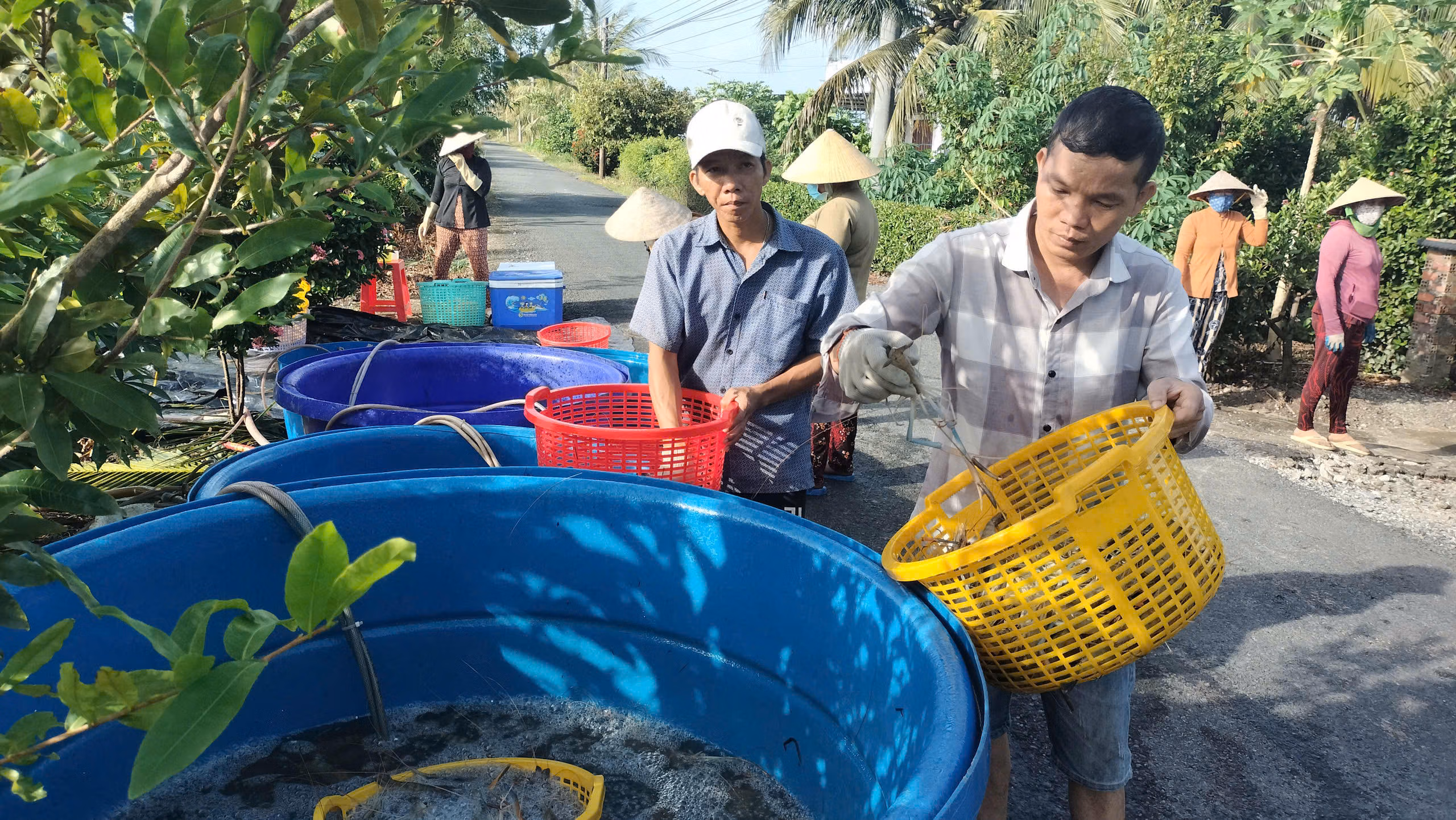 thêm hơn 30 triệu đồng. Sau tôm là tới vụ thu hoạch lúa, ông không lo thiếu tiền ăn Tết.