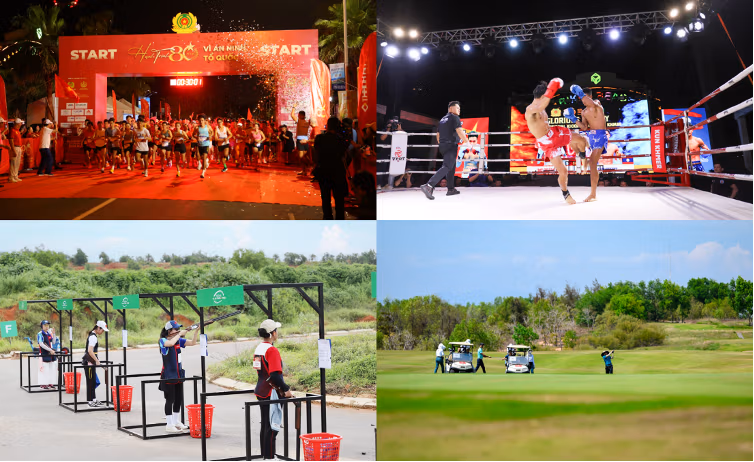 NovaWorld Phan Thiet còn chứng minh nơi đây là điểm đến lý tưởng cho các hoạt động thể dục thể thao đa dạng: cụm sân golf 36 hố tiêu chuẩn quốc tế NovaWorld Phan Thiet Golf Club, sân thi đấu tennis, võ thuật, các môn thi đấu phối hợp bơi, chạy,…. Sports Festival 2025 quy tụ 6 bộ môn thi đấu chính gồm: giải golf Công an nhân dân mở rộng lần 1, giải chạy “Hành trình 80 năm – Vì an ninh Tổ quốc”, bắn súng đĩa bay Compak Sporting, tennis, pickleball và các bộ môn võ thuật như kickboxing và Kun Khmer. Đây là dịp du khách đến với NovaWorld Phan Thiet vừa có thể tận hưởng không gian nghỉ dưỡng lý tưởng vừa xem các màn thi đấu thể thao chuyên nghiệp.
