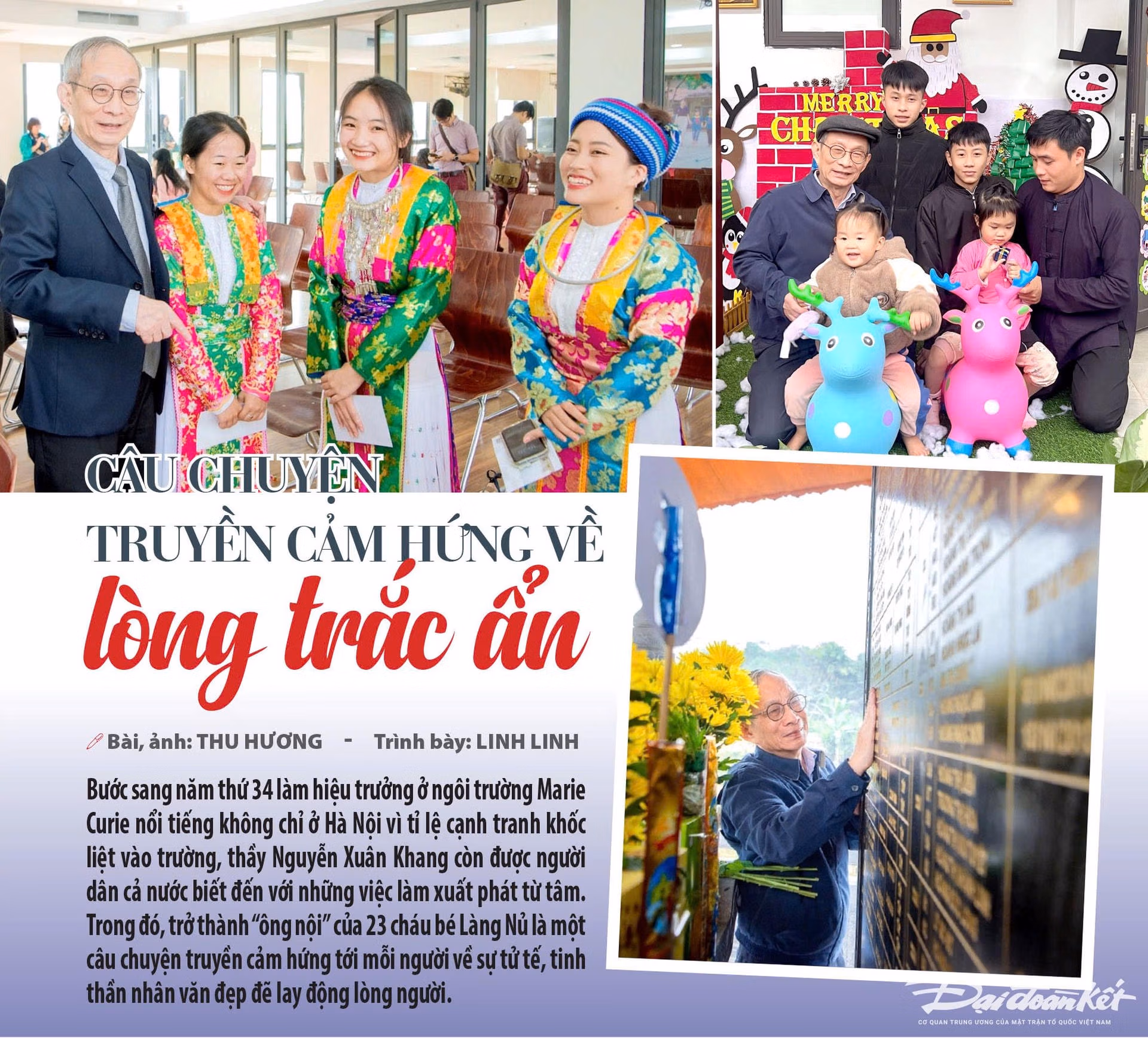 “Hình ảnh đầu tiên làm tôi xúc động là cháu Hoàng Ngọc Lan trong bệnh viện. Cô bé 6 tuổi này làm tôi khóc nhiều nhất và khiến tôi suy nghĩ phải làm chỗ dựa phần nào đó cho bé này. Và tôi quyết tâm làm ông của 23 cháu còn sống sót ở thôn và nuôi các cháu tới năm 18 tuổi” – thầy Nguyễn Xuân Khang nhớ lại.