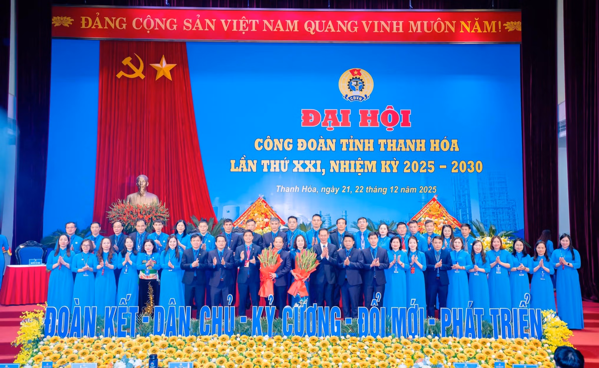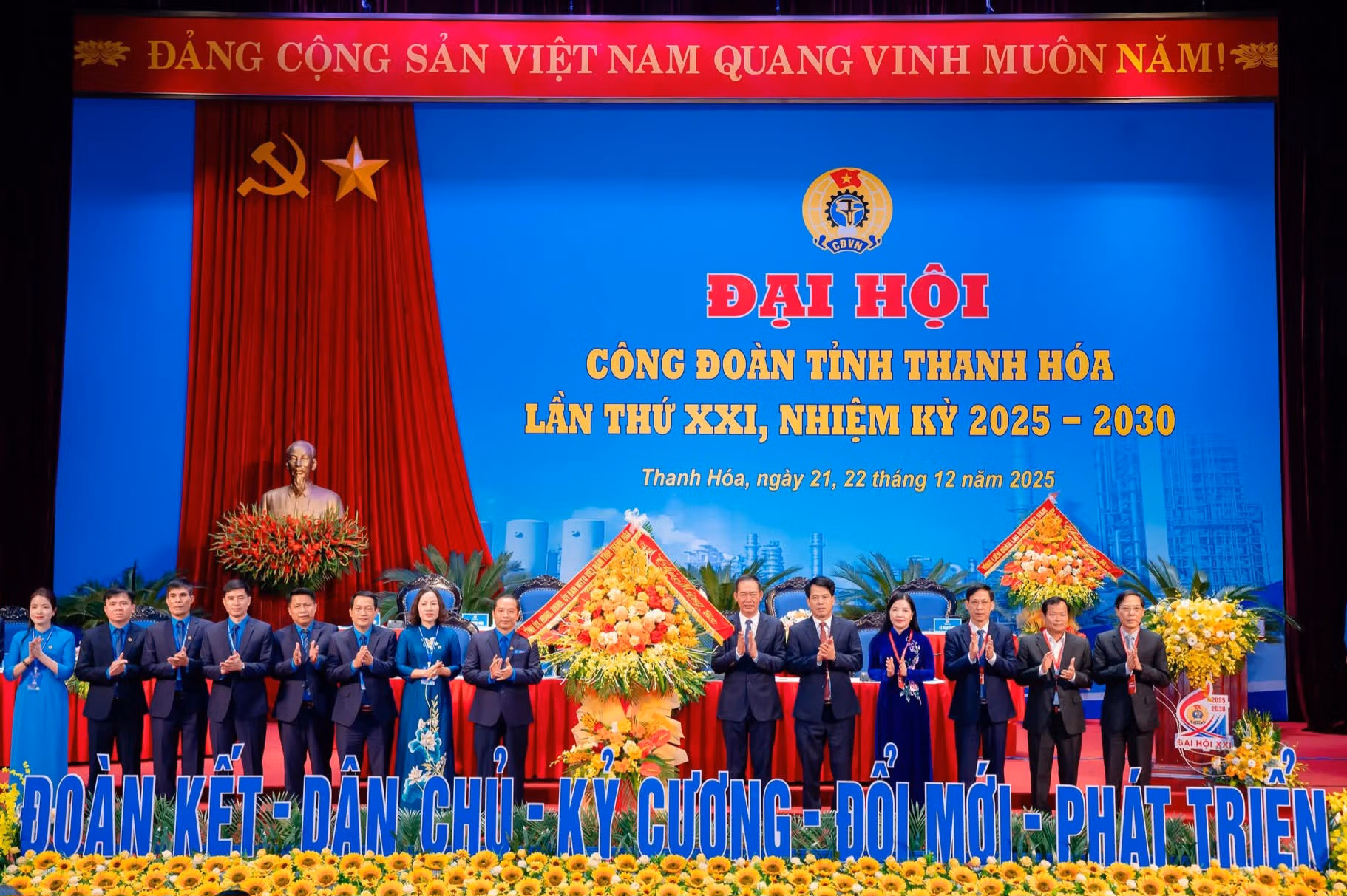 Ngày 22/12, tại Trung tâm hội nghị 25B (phường Hạc Thành), Liên đoàn Lao động (LĐLĐ) tỉnh Thanh Hóa long trọng tổ chức đại hội Công đoàn tỉnh Thanh Hóa lần thứ XXI, nhiệm kỳ 2025 - 2030. Đại hội là sự kiện chính trị quan trọng của giai cấp công nhân và tổ chức công đoàn tỉnh, đánh dấu chặng đường phát triển mới của phong trào công nhân, viên chức, lao động và hoạt động công đoàn trong toàn tỉnh.