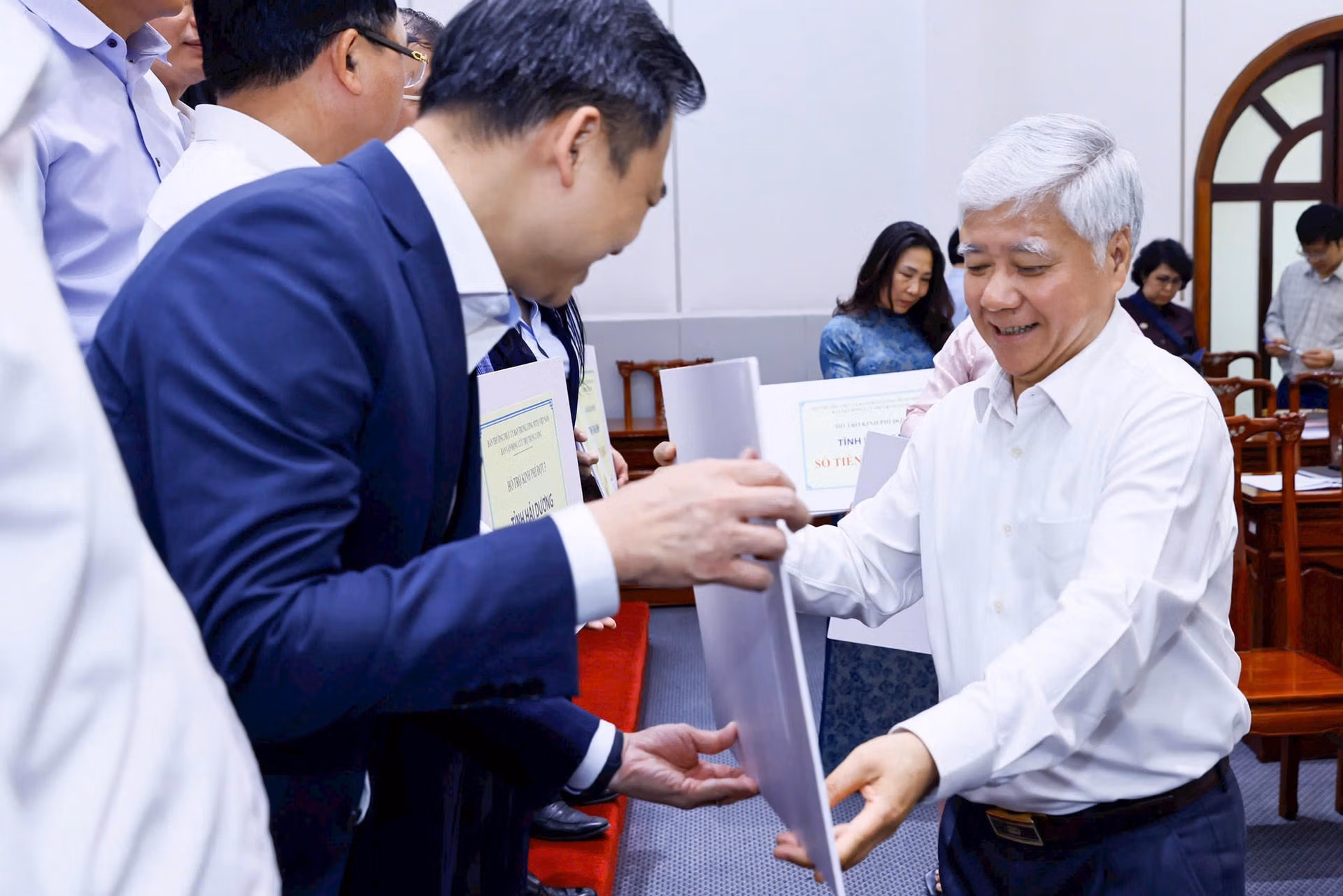 Tại Hội nghị, thay mặt Ban Vận động Cứu trợ Trung ương, Chủ tịch Đỗ Văn Chiến và Phó Chủ tịch - Tổng Thư ký Nguyễn Thị Thu Hà đã trao kinh phí hỗ trợ đợt 3 cho 18 tỉnh, thành phố bị thiệt hại do cơn bão số 3 gây ra.
