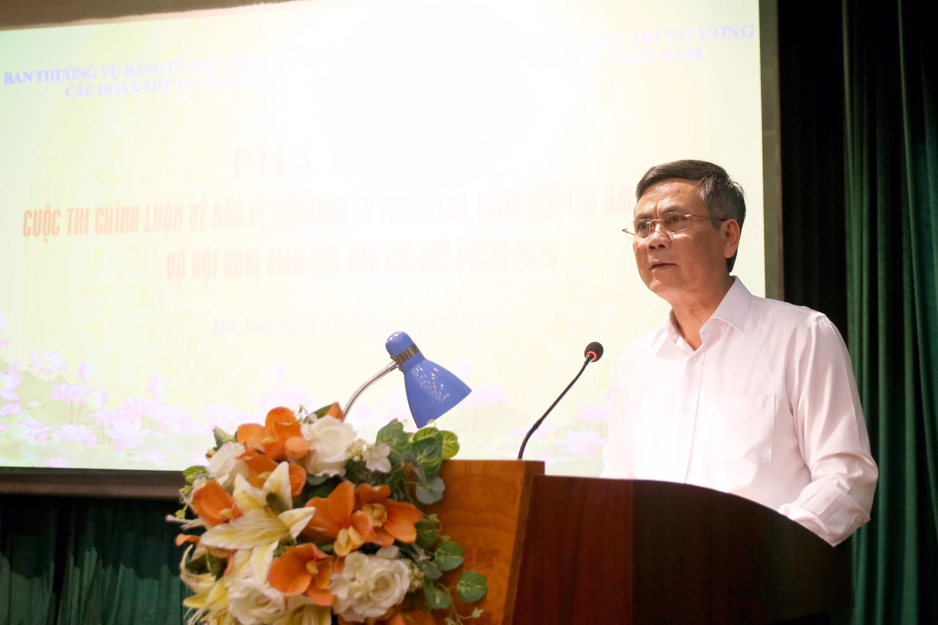 Thay mặt Ban Thường vụ Đảng ủy, Phó Bí thư Đảng uỷ MTTQ, các đoàn thể Trung ương Trần Thắng đã phát động Cuộc thi chính luận về bảo vệ nền tảng tư tưởng của Đảng lần thứ Hai, năm 2026 của Đảng bộ; đồng thời đề nghị các tổ chức đảng trực thuộc, hệ thống MTTQ Việt Nam, các tổ chức chính trị - xã hội, hội quần chúng do Đảng, Nhà nước giao nhiệm vụ và cơ quan báo chí của các đoàn thể tích cực hưởng ứng và tham gia Cuộc thi, nghiên cứu tổ chức Cuộc thi ở đơn vị theo hướng sáng tạo, thiết thực, hiệu quả, phù hợp với chức năng, nhiệm vụ, đối tượng của các đơn vị; qua đó, phát huy vai trò của hệ thống các tổ chức chính trị - xã hội, các hội quần chúng do Đảng, Nhà nước giao nhiệm vụ, đặc biệt là hướng về cơ sở.