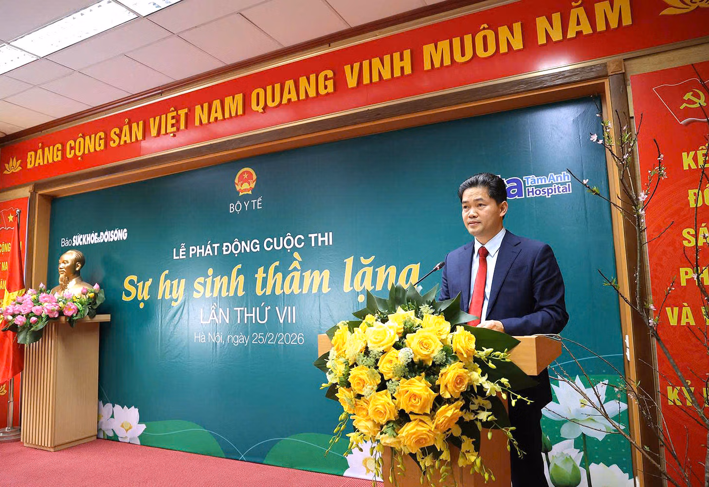 Chiều 25/2, tại trụ sở Bộ Y tế đã diễn ra lễ phát động cuộc thi “Sự hy sinh thầm lặng” lần thứ VII do Báo Sức khoẻ và Đời sống tổ chức. Đây là một trong những hoạt động trong chuỗi sự kiện hướng tới kỷ niệm 71 năm Ngày Thầy thuốc Việt Nam (27/02/1955 - 27/02/2026).