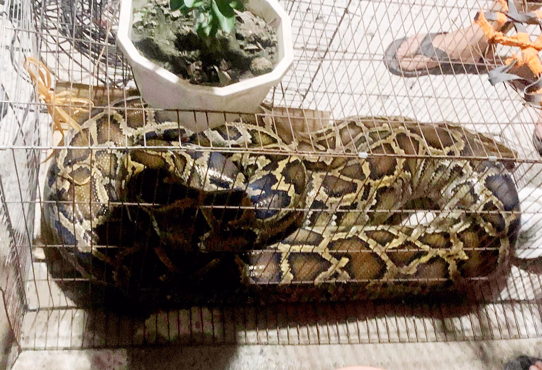 Phát hiện cá thể trăn đất nặng khoảng 45 kg đang vào vườn ăn gà