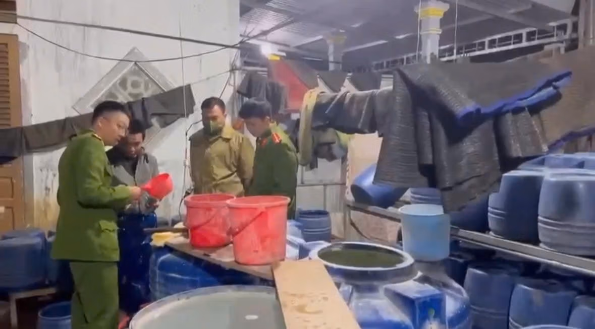Đồng thời, lực lượng Công an phát hiện tại khu vực sản xuất giá đỗ có 4 can nhựa màu trắng loại 4 lít không có tem nhãn mác, bên trong có chứa dung dịch chất lỏng màu trắng.