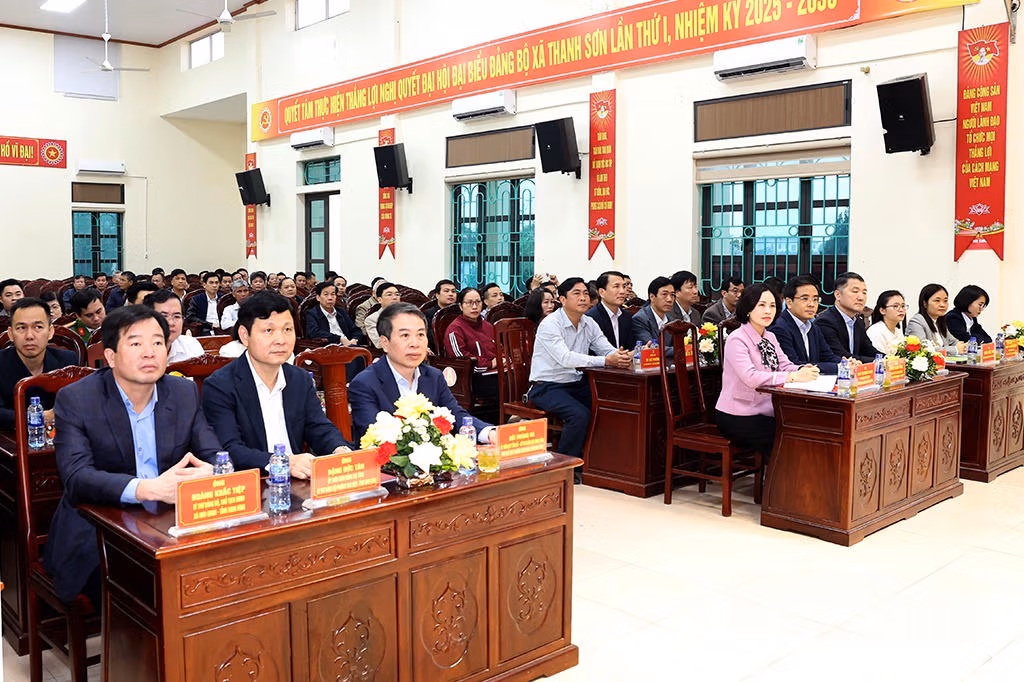 Các ứng cử viên ĐBQH tại đơn vị bầu cử số 3 và đại biểu HĐND tỉnh tại đơn vị bầu cử số 7 tiếp xúc cử tri xã Thanh Sơn sáng 6/3. Ảnh: Minh Quang