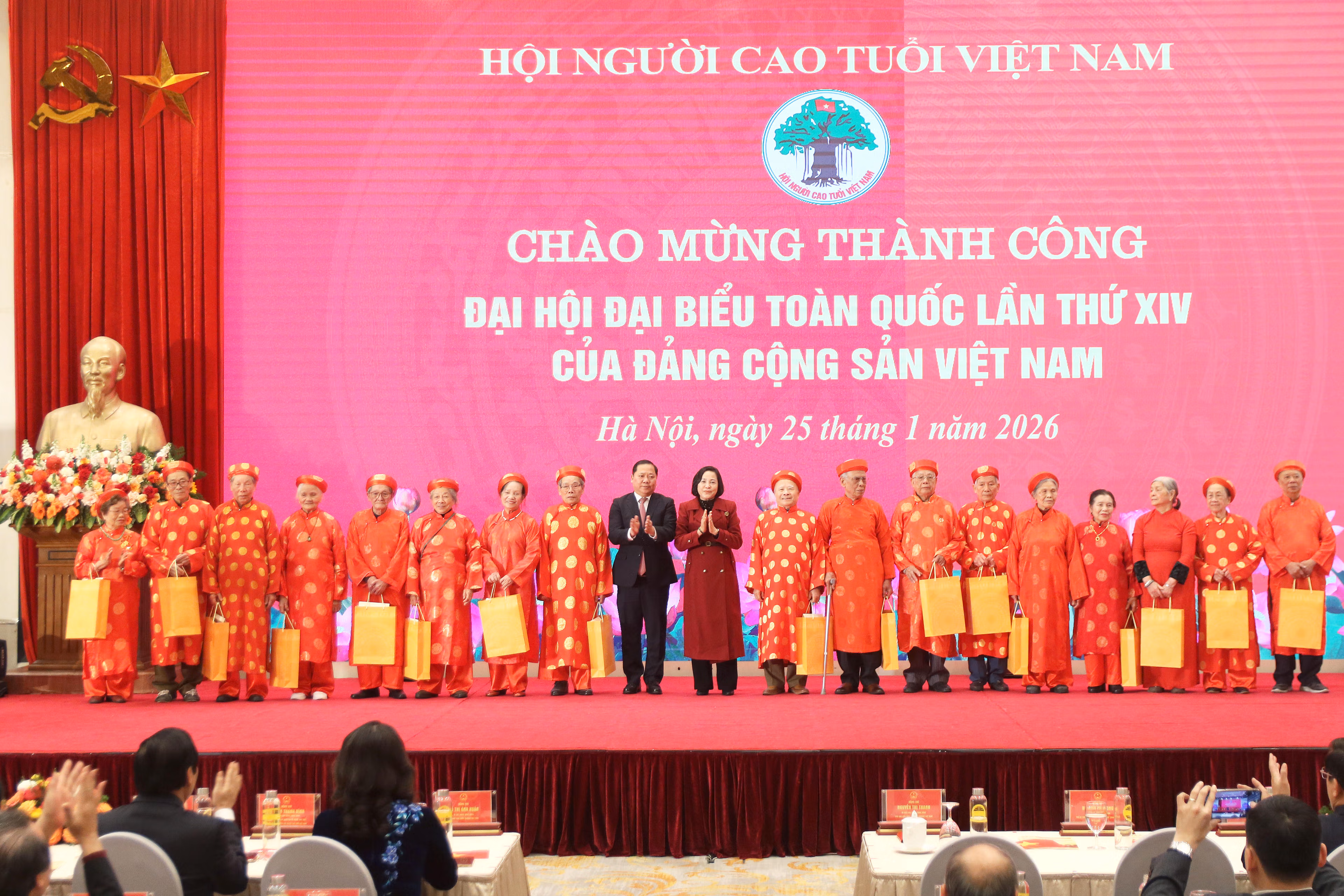 Tối 25/1, tại Hà Nội, Trung ương Hội Người cao tuổi Việt Nam tổ chức Chương trình nghệ thuật chào mừng thành công Đại hội đại biểu toàn quốc lần thứ XIV của Đảng với chủ đề “Hào khí Diên Hồng trong kỷ nguyên mới”; tặng quà người cao tuổi tiêu biểu trong phong trào thi đua yêu nước.