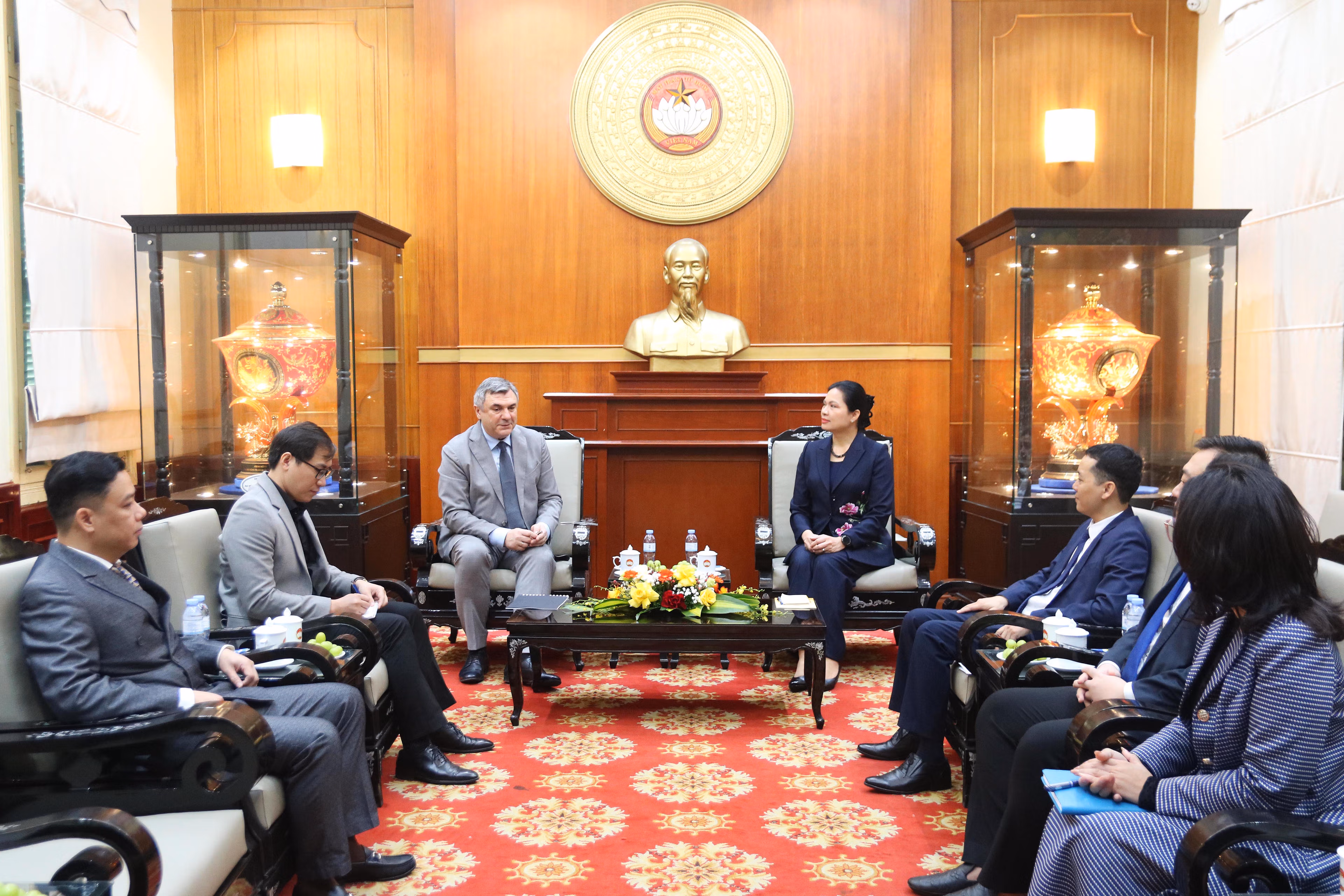 Tại buổi tiếp, Phó Chủ tịch - Tổng Thư ký Hà Thị Nga đã chia sẻ với ông V.G. Kalganov về quá trình sắp xếp tổ chức bộ máy của Cơ quan UBTƯ MTTQ Việt Nam. Theo đó, sau sắp xếp, các tổ chức chính trị - xã hội về trực thuộc MTTQ Việt Nam nhưng vẫn giữ tính độc lập tương đối trong thực hiện nhiệm vụ theo Điều lệ của mỗi tổ chức.