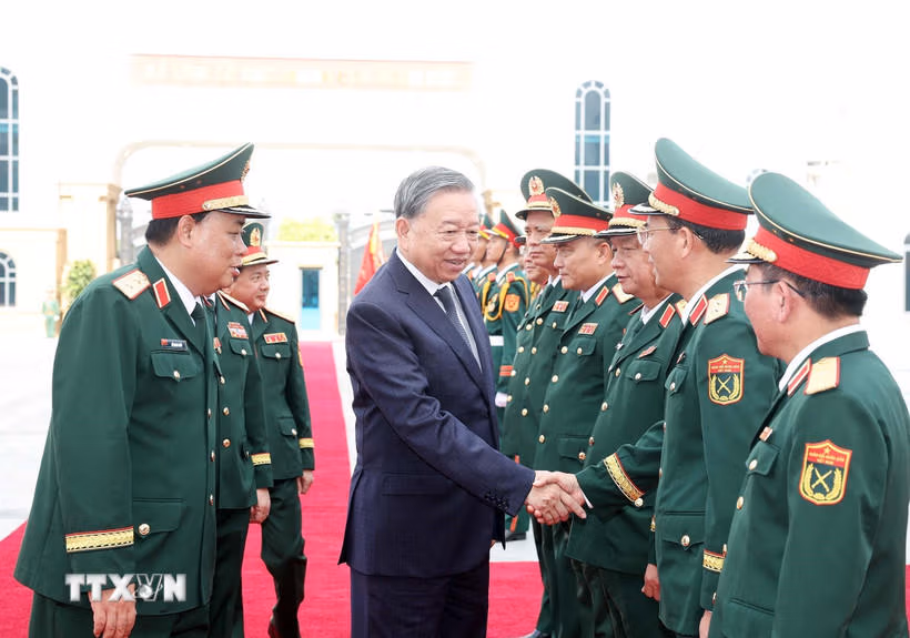 Tổng Bí thư Tô Lâm, Bí thư Quân ủy Trung ương dự và phát biểu chỉ đạo tại Lễ kỷ niệm.