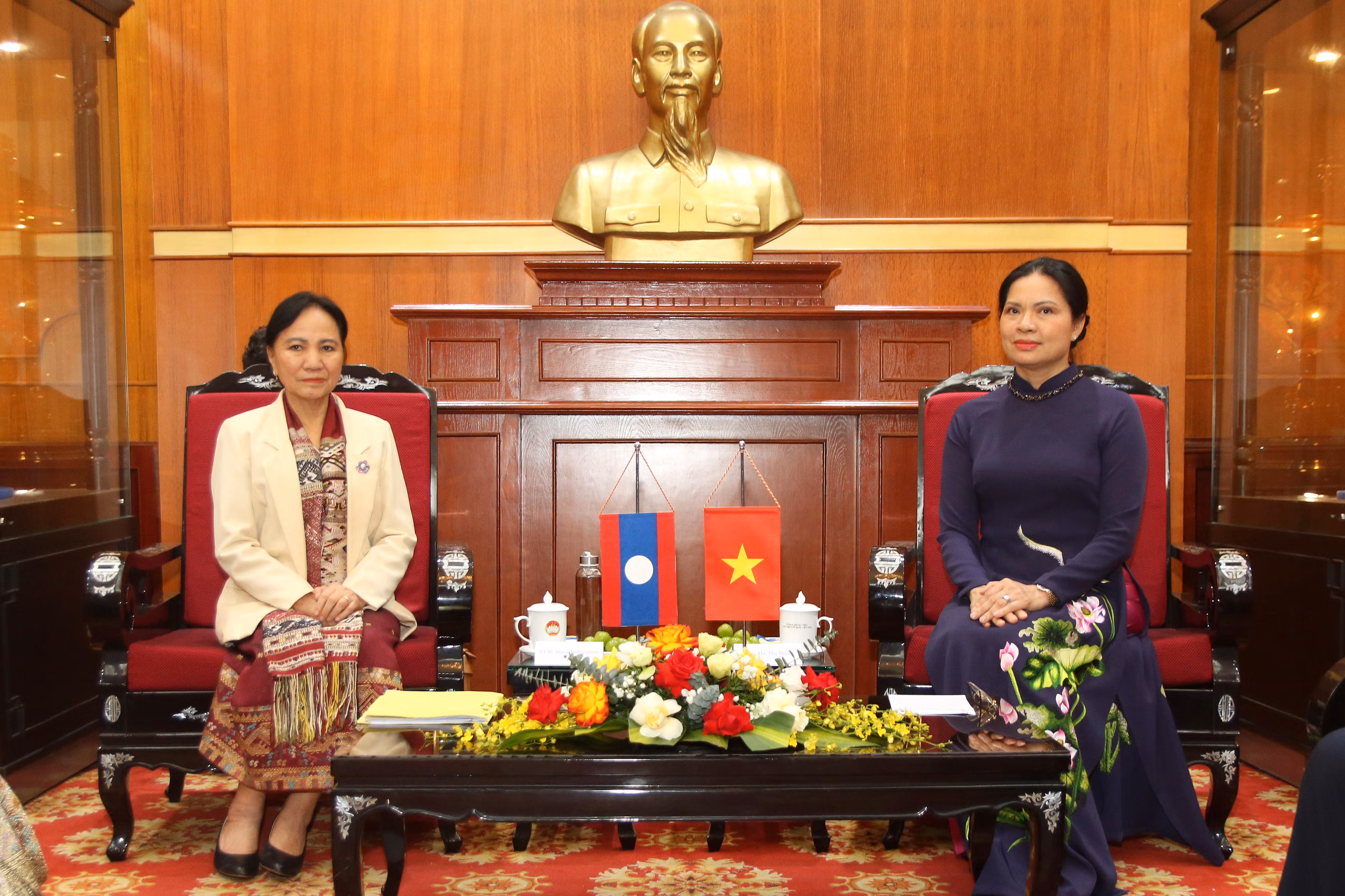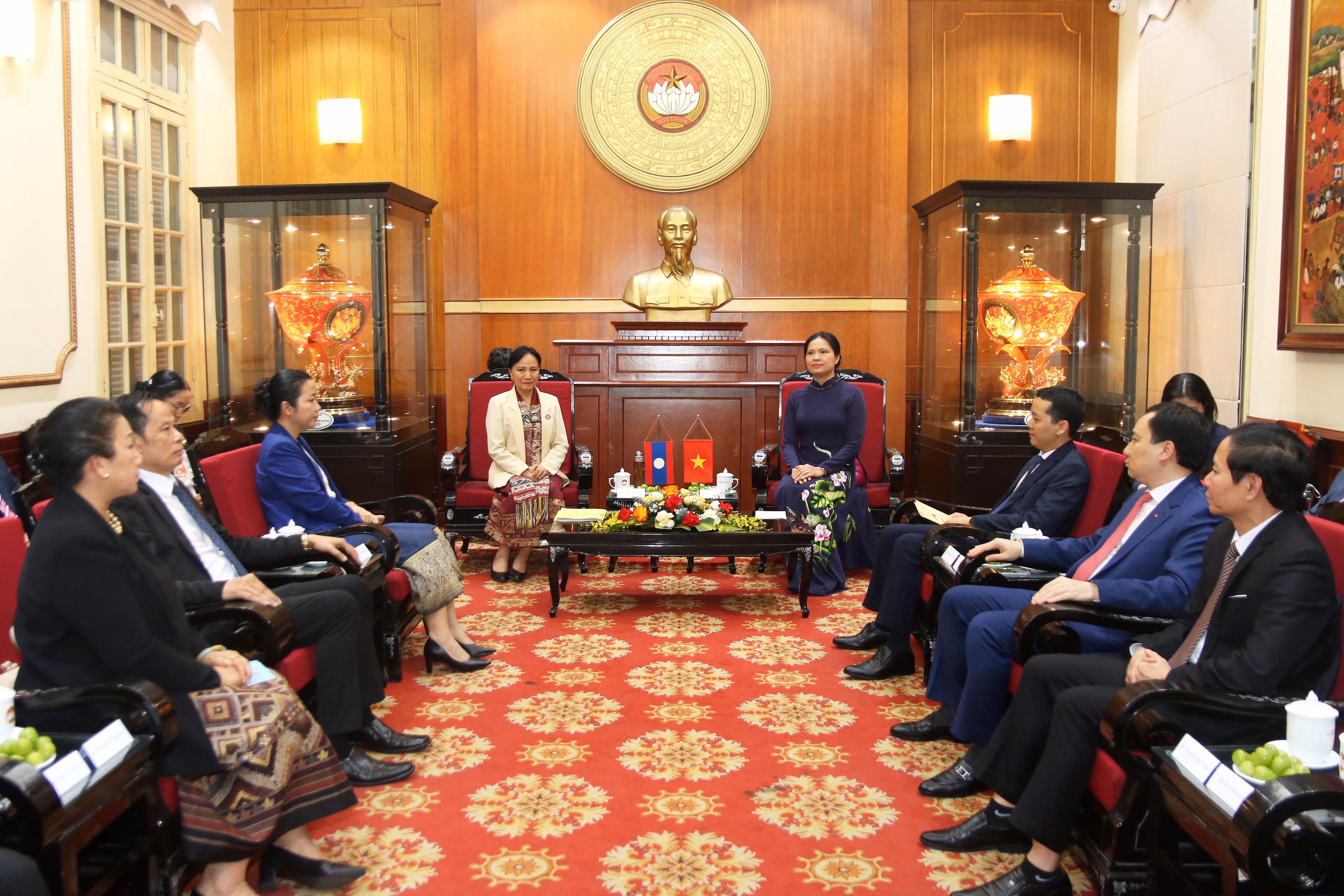 Phó Chủ tịch Hà Thị Nga tiếp Đoàn đại biểu Ủy ban Trung ương Mặt trận Lào xây dựng đất nước