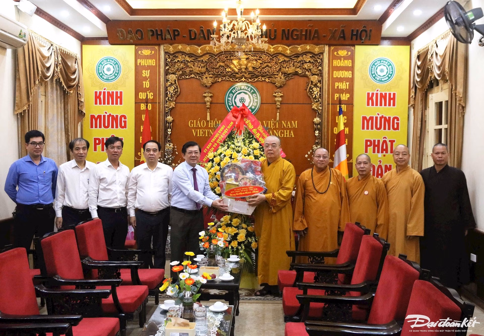 Trong không khí vui mừng, phấn khởi mừng ngày Đức Phật đản sinh, Hòa thượng Thích Thanh Nhiễu, Phó Chủ tịch Thường trực Hội đồng trị sự Trung ương GHPG Việt Nam cảm ơn sự quan tâm của lãnh đạo UBTƯ MTTQ Việt Nam; đồng thời khẳng định thời gian tới, GHPG Việt Nam sẽ tích cực vận động tăng, ni, Phật tử chấp hành tốt chủ trương, đường lối của Đảng, chính sách, pháp luật của Nhà nước, phát huy tốt hơn nữa truyền thống “hộ quốc, an dân”, tiếp tục chung tay xây dựng, củng cố khối Đại đoàn kết toàn dân, động viên tăng, ni, Phật tử tiếp tục đóng góp xây dựng đất nước ngày càng văn minh, giàu đẹp.
