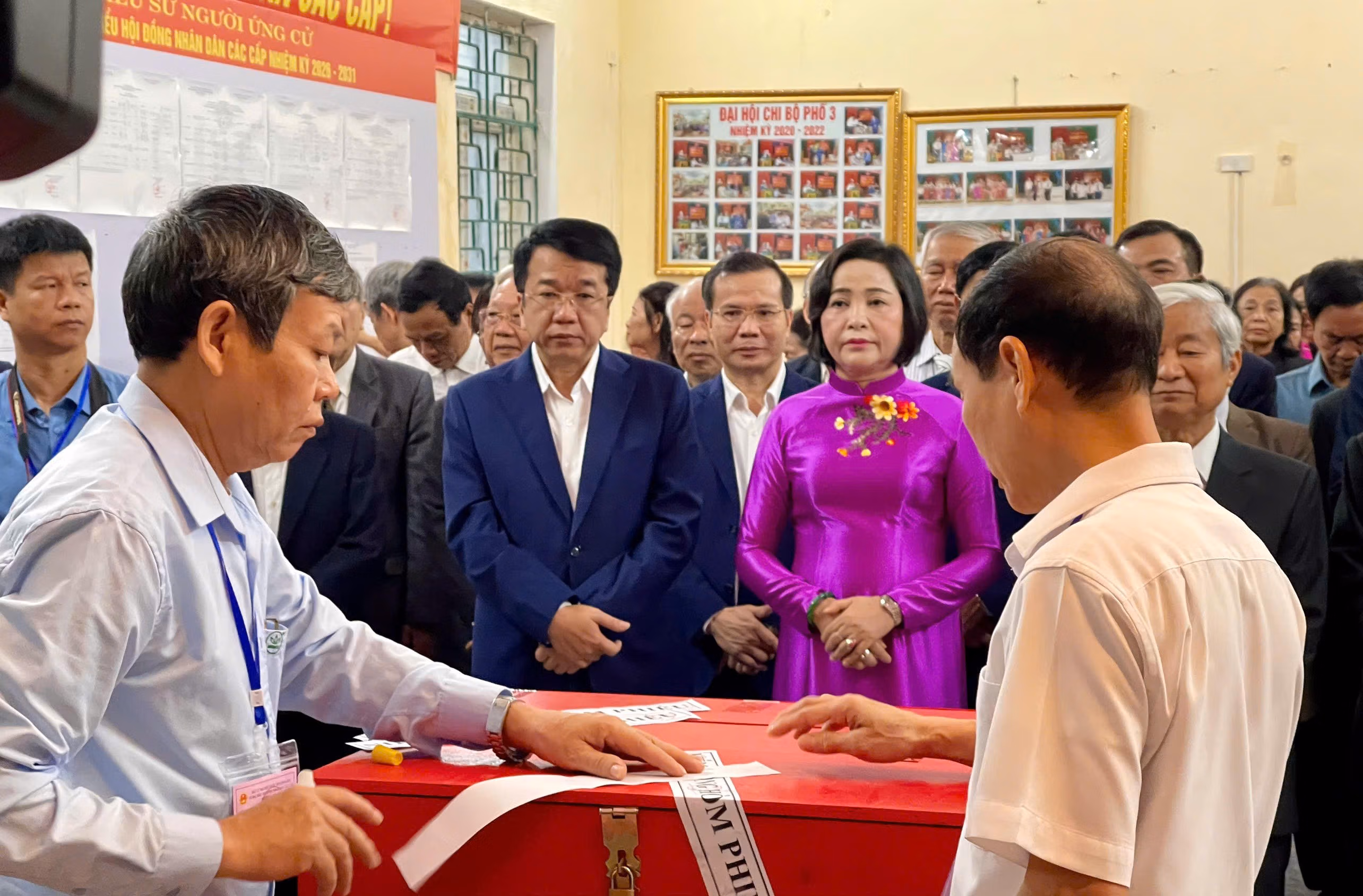 Ông Nguyễn Công Dũng - Bí thư Chi bộ phố 4 Đông Thành, Tổ trưởng Tổ bầu cử số 27, phường Hoa Lư, tỉnh Ninh Bình cho biết: Tổ bầu cử số 4 có 2.064 cử tri thuộc các phố 3, 4 và 11 tham gia bỏ phiếu. Không khí tại điểm bỏ phiếu diễn ra trang nghiêm, đúng quy định, các cử tri đến từ sớm để tham gia bỏ phiếu.