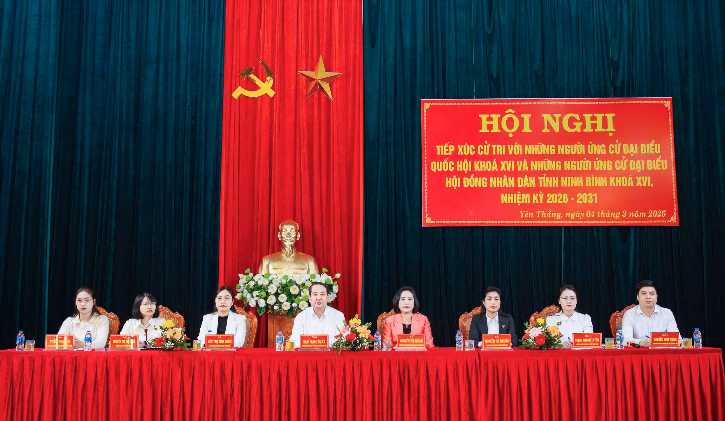 Tại các điểm tiếp xúc cử tri trên địa bàn tỉnh Ninh Bình, bà Nguyễn Thị Thanh - Phó Chủ tịch Quốc hội; bà Lê Thị Nga - Phó Chủ nhiệm Thường trực Ủy ban Dân nguyện và Giám sát của Quốc hội; ông Mai Văn Tuất - Phó Bí thư Tỉnh ủy, Chủ tịch Ủy ban MTTQ tỉnh... cùng các ứng cử viên đã trình bày chương trình hành động, cam kết giữ mối liên hệ chặt chẽ với nhân dân, tích cực tham gia xây dựng pháp luật và tăng cường giám sát vì sự phát triển bền vững của Ninh Bình.