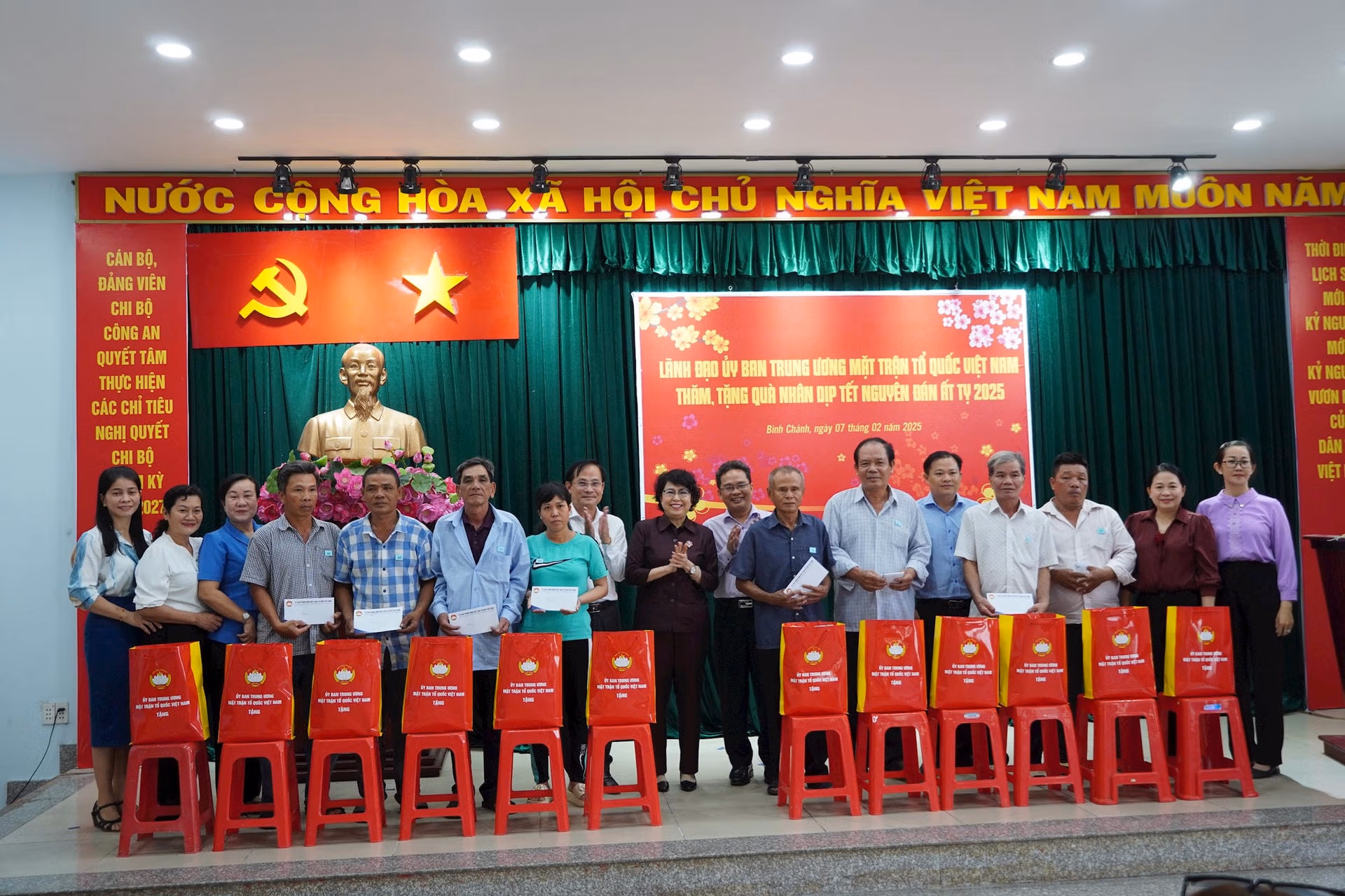Nhân dịp đầu Xuân Ất Tỵ năm 2025, chiều 7/2, tại TPHCM, Phó Chủ tịch UBTƯ MTTQ Việt Nam Tô Thị Bích Châu đã thăm hỏi và trao quà cho các gia đình chính sách, người có công với cách mạng, hộ cận nghèo trên địa bàn quận 6 và huyện Bình Chánh.