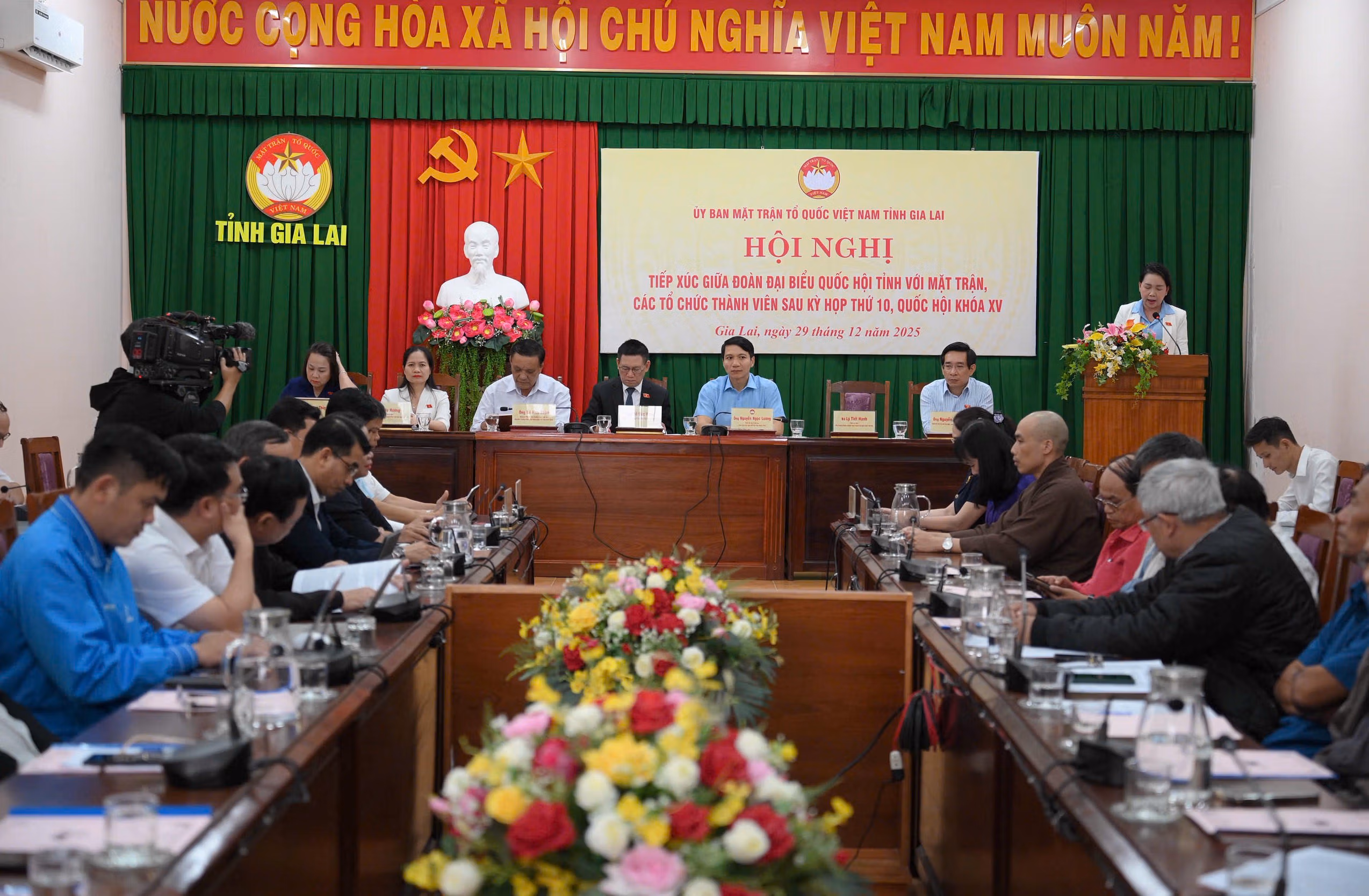 Tại hội nghị, đại biểu Lý Tiết Hạnh, Phó Trưởng đoàn chuyên trách Đoàn ĐBQH tỉnh Gia Lai, đã báo cáo kết quả Kỳ họp thứ 10, kỳ họp thường lệ cuối cùng của nhiệm kỳ Quốc hội khóa XV, xem xét và quyết định nhiều vấn đề chiến lược, có ý nghĩa đặc biệt quan trọng đối với định hướng phát triển đất nước trong giai đoạn mới.