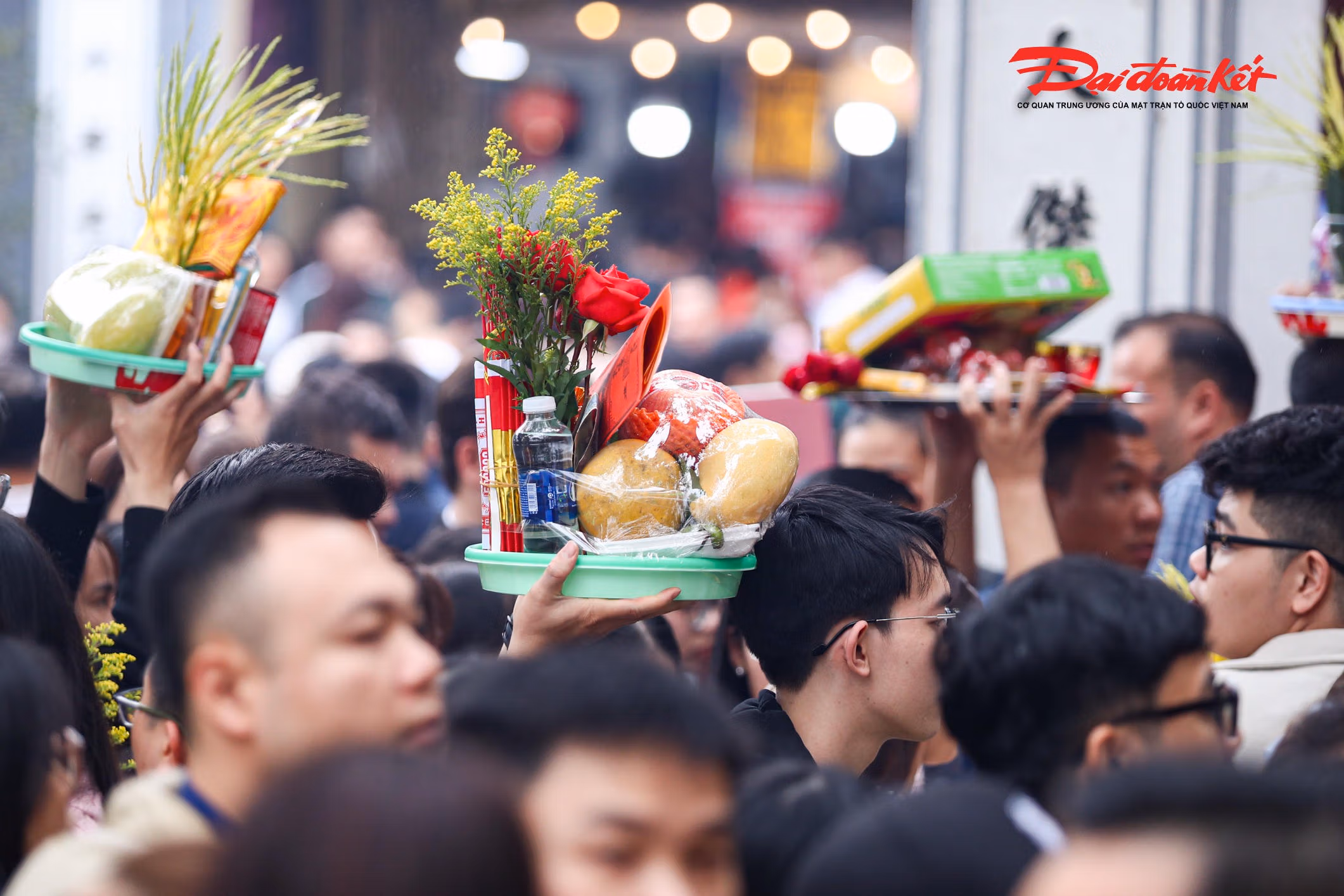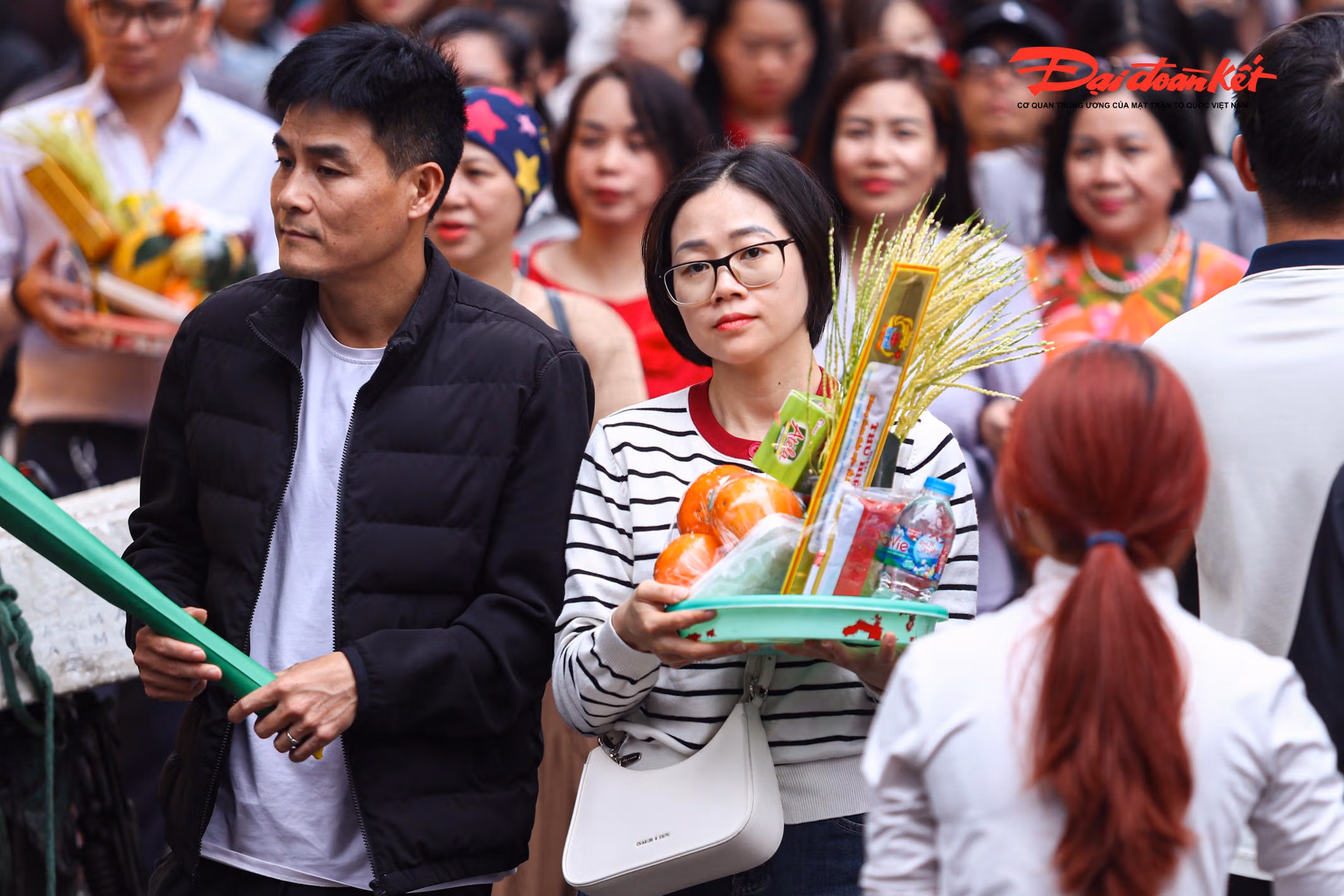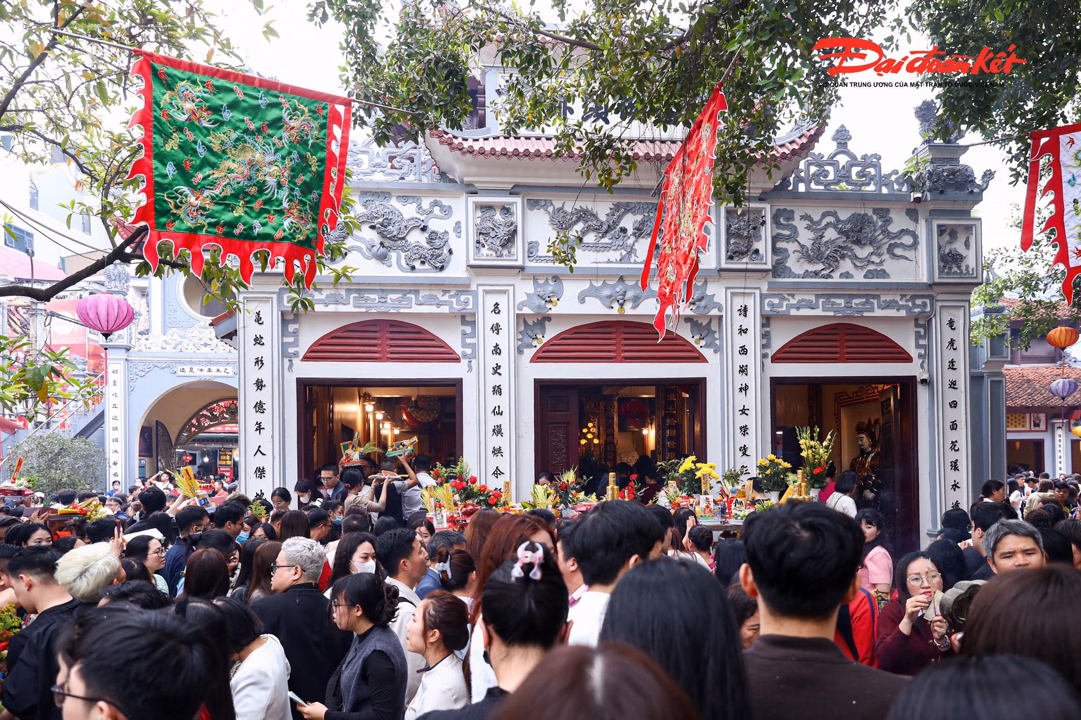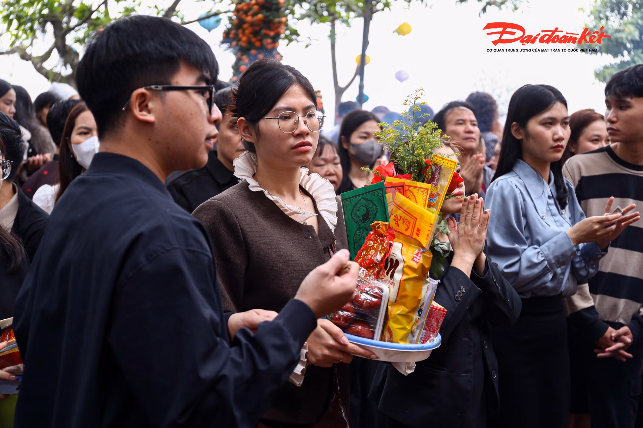 Từ trưa dòng người đã xếp hàng dài ngoài sân Phủ, tạo nên khung cảnh tấp nập kéo dài. Sự đông đúc ấy khiến Phủ Tây Hồ trở nên rộn ràng, nhộn nhịp hơn thường ngày.