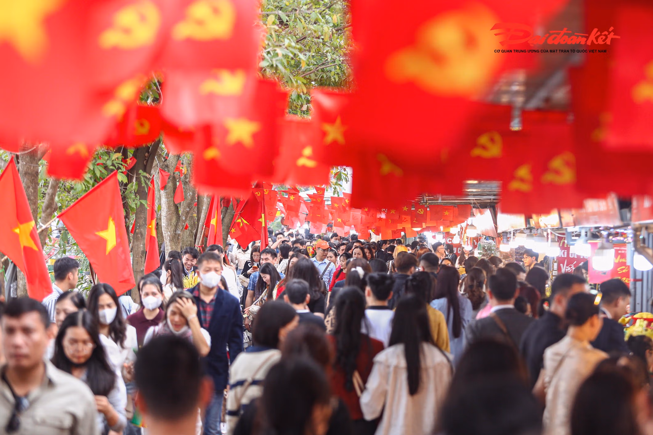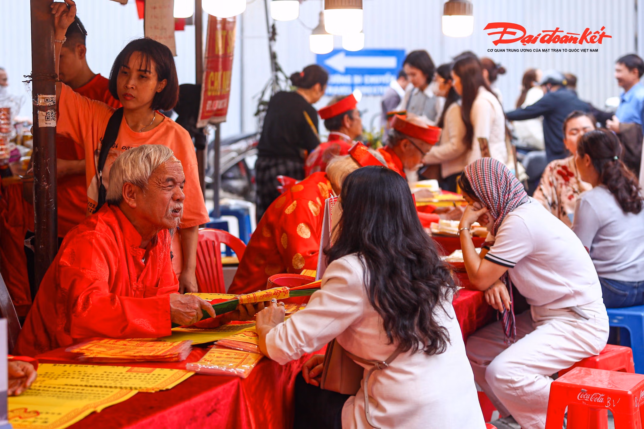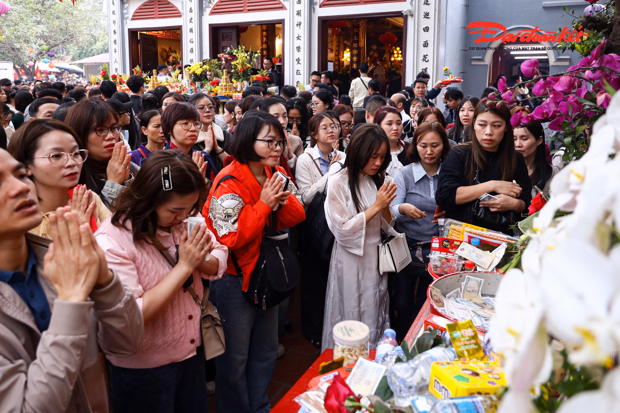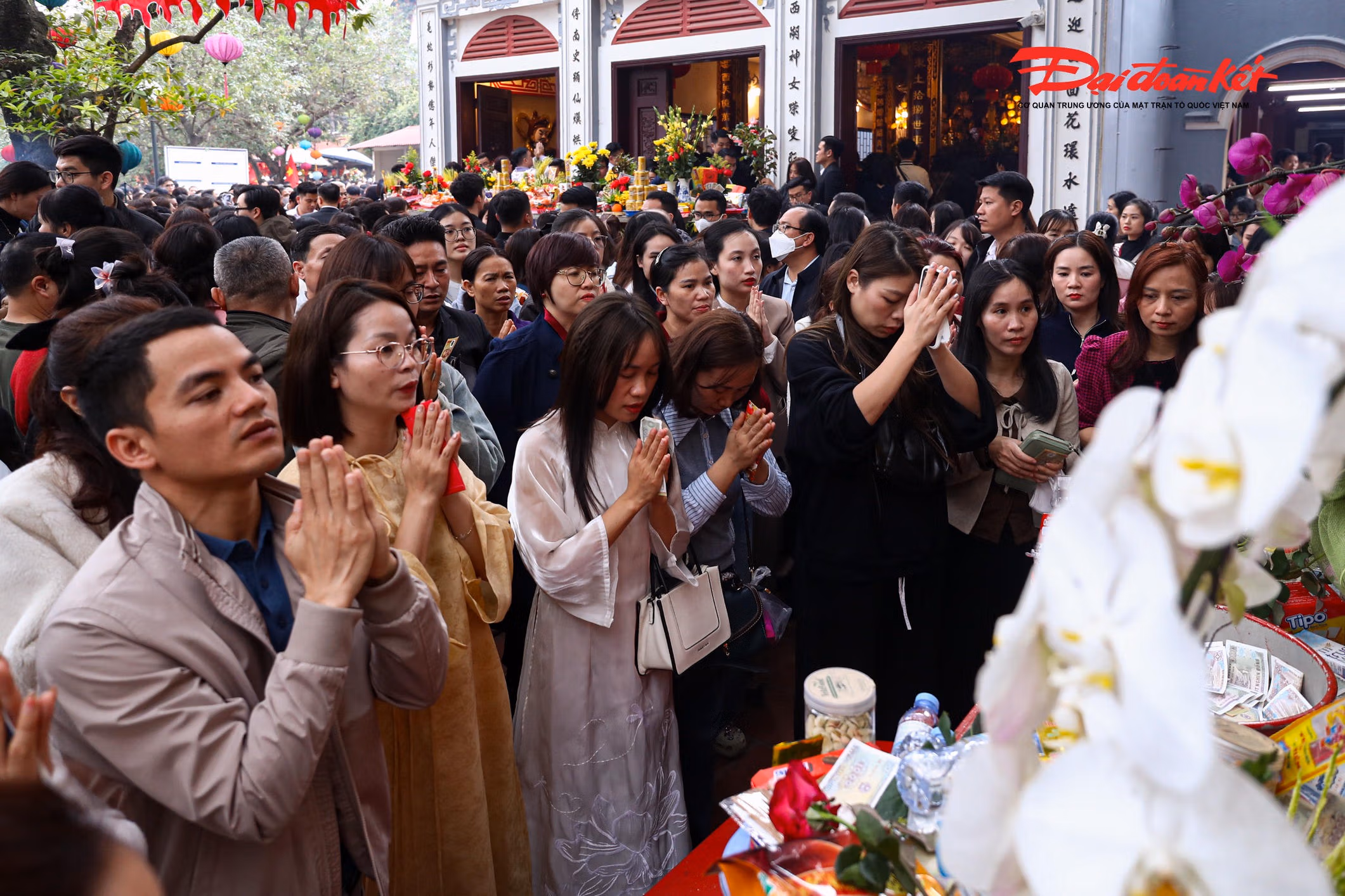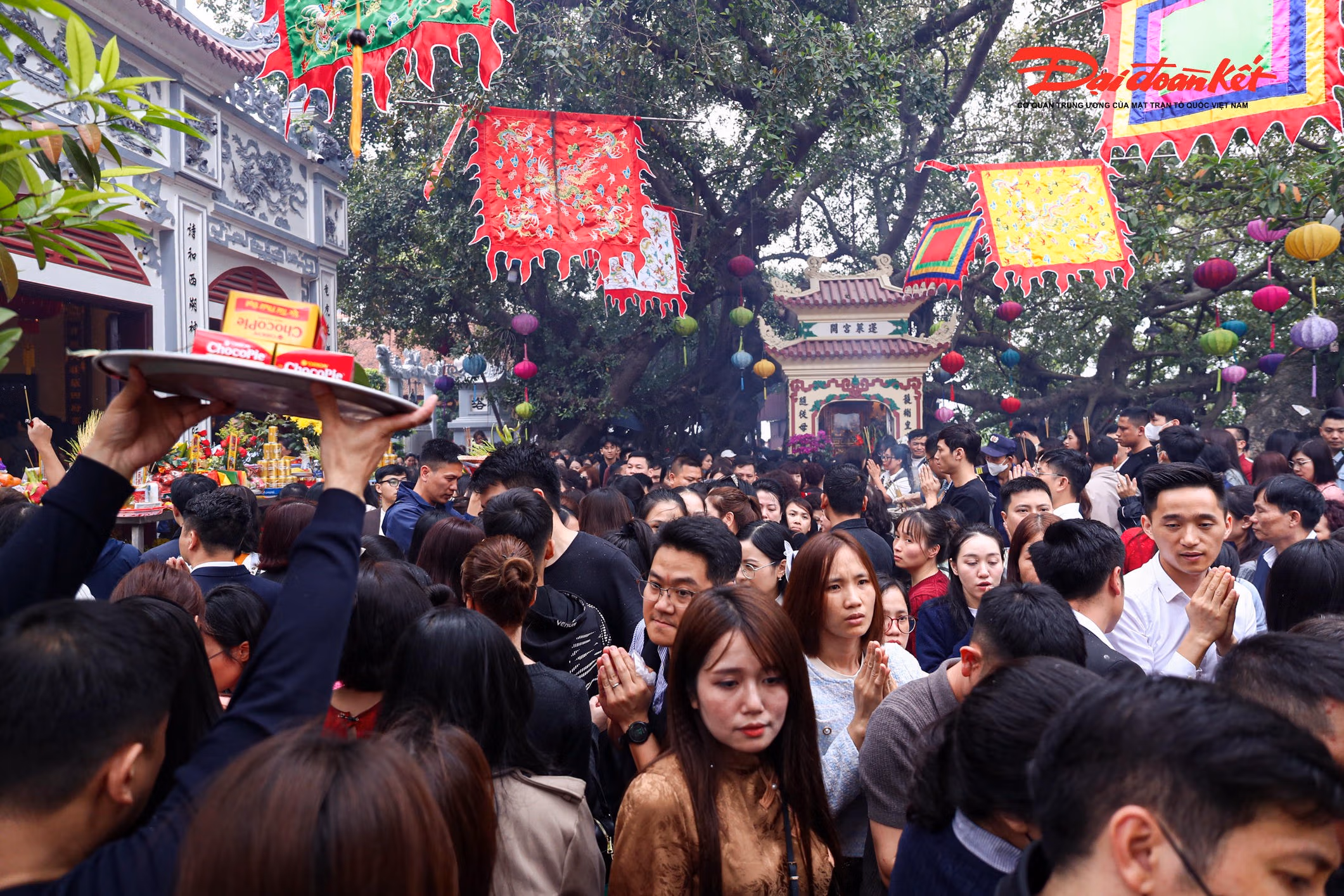 Từ trưa dòng người đã xếp hàng dài ngoài sân Phủ, tạo nên khung cảnh tấp nập kéo dài. Sự đông đúc ấy khiến Phủ Tây Hồ trở nên rộn ràng, nhộn nhịp hơn thường ngày.