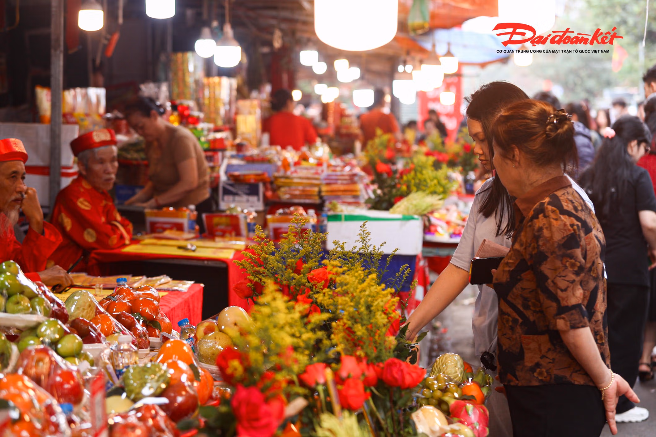 Tại khu vực quanh phủ, nhiều tiểu thương bày bán mâm lễ trọn gói, giá phổ biến từ 200.000 đồng trở lên.