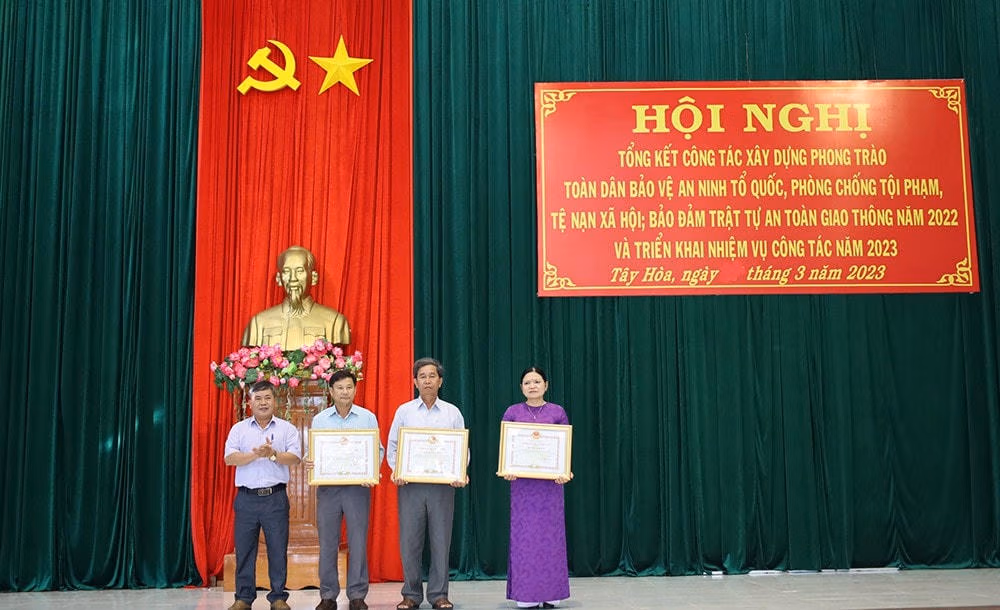 Nhân dịp này, UBND tỉnh Phú Yên, Công an tỉnh Phú Yên, Ban ATGT tỉnh Phú Yên khen thưởng cho 9 tập thể, cá nhân; UBND huyện Tây Hòa khen thưởng 35 tập thể, cá nhân có thành tích xuất sắc trong phong trào toàn dân bảo vệ ANTQ và trong công tác bảo đảm trật tự ATGT năm 2022.