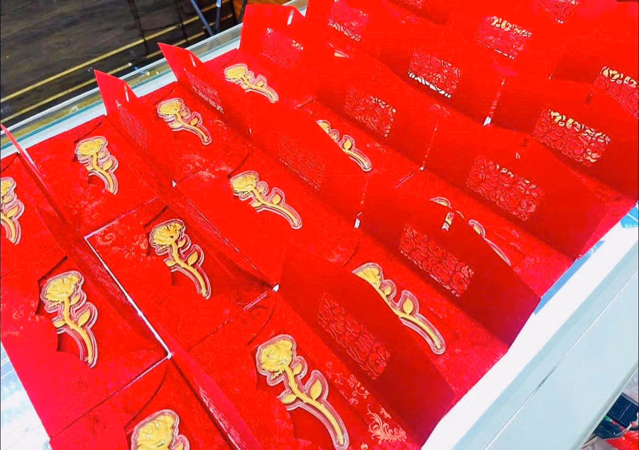 “Các món quà tặng bằng vàng dưới dạng trang sức, biểu tượng, với mức giá niêm yết cộng thêm chi phí gia công từ 700 nghìn đồng đến 2 triệu đồng/sản phẩm, vẫn đang được bán chạy. Dù giá vàng cao chưa từng có, cộng với phí gia công, nhưng các mặt hàng như bông hồng vàng, trái tim vàng vẫn luôn có khách mua ngay khi vừa ra quầy," chị Lê Thị Thảo, chủ một cửa hàng vàng bạc đá quý tại Cầu Giấy, Hà Nội chia sẻ.