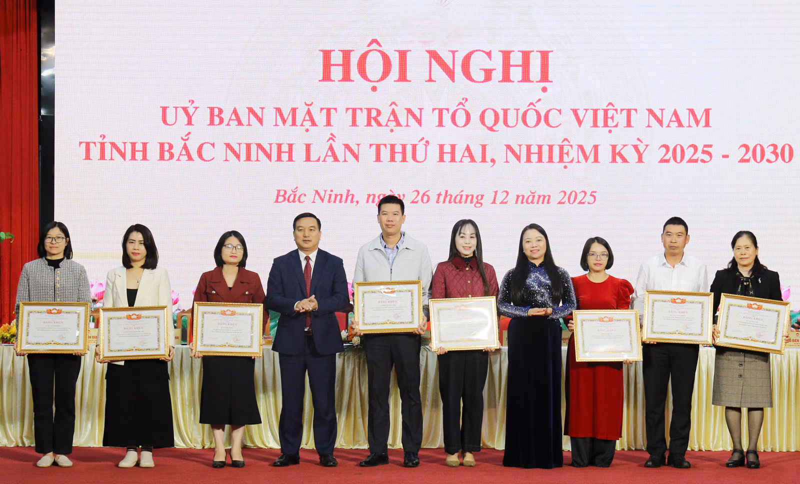 Nhân dịp này, nhiều tập thể, cá nhân được khen thưởng do có thành tích xuất sắc trong công tác mặt trận năm 2025.