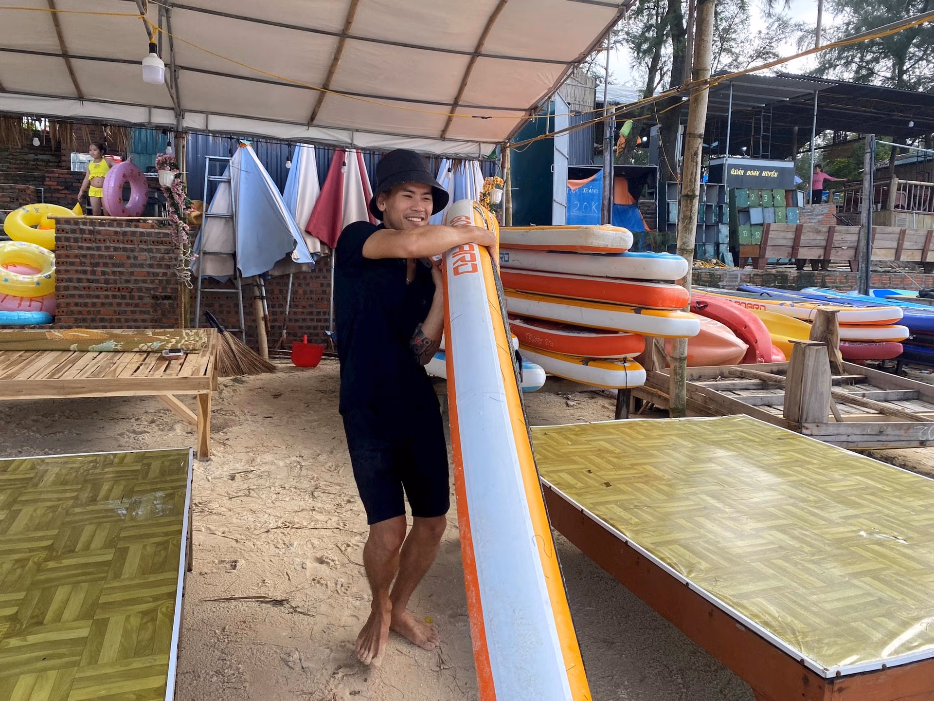 Vào khoảng 9h sáng 23/7, tốc độ gió ở Cô Tô giảm còn cấp 3-4, trời ngừng mưa.