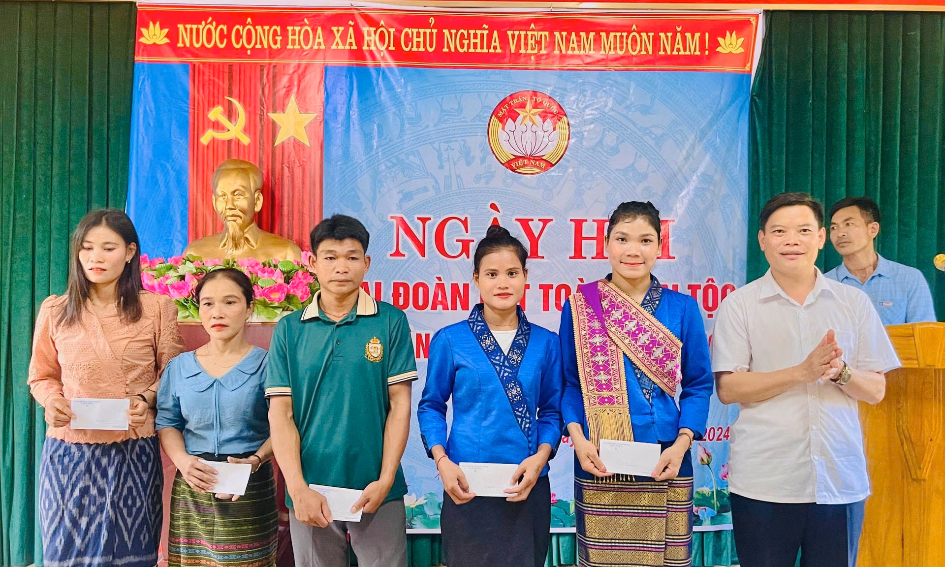 Nhân dịp tổ chức Ngày hội Đại đoàn kết, Hội Nông dân huyện Minh Hóa - đơn vị nhận đỡ đầu bản Hưng trong chương trình Dân vận khéo đã trao tặng nhiều suất quà khích lệ các hộ gia đình văn hóa và hộ nghèo ở bản.