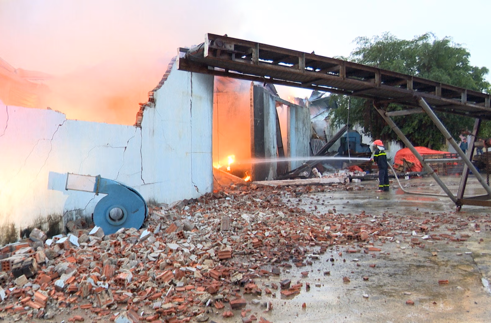 Cụ thể, vào khoảng 4 giờ 30 phút cùng ngày, vụ cháy được phát hiện tại nhà xưởng sản xuất bột cá của Công ty TNHH Dịch vụ và Sản xuất Tam Phát.