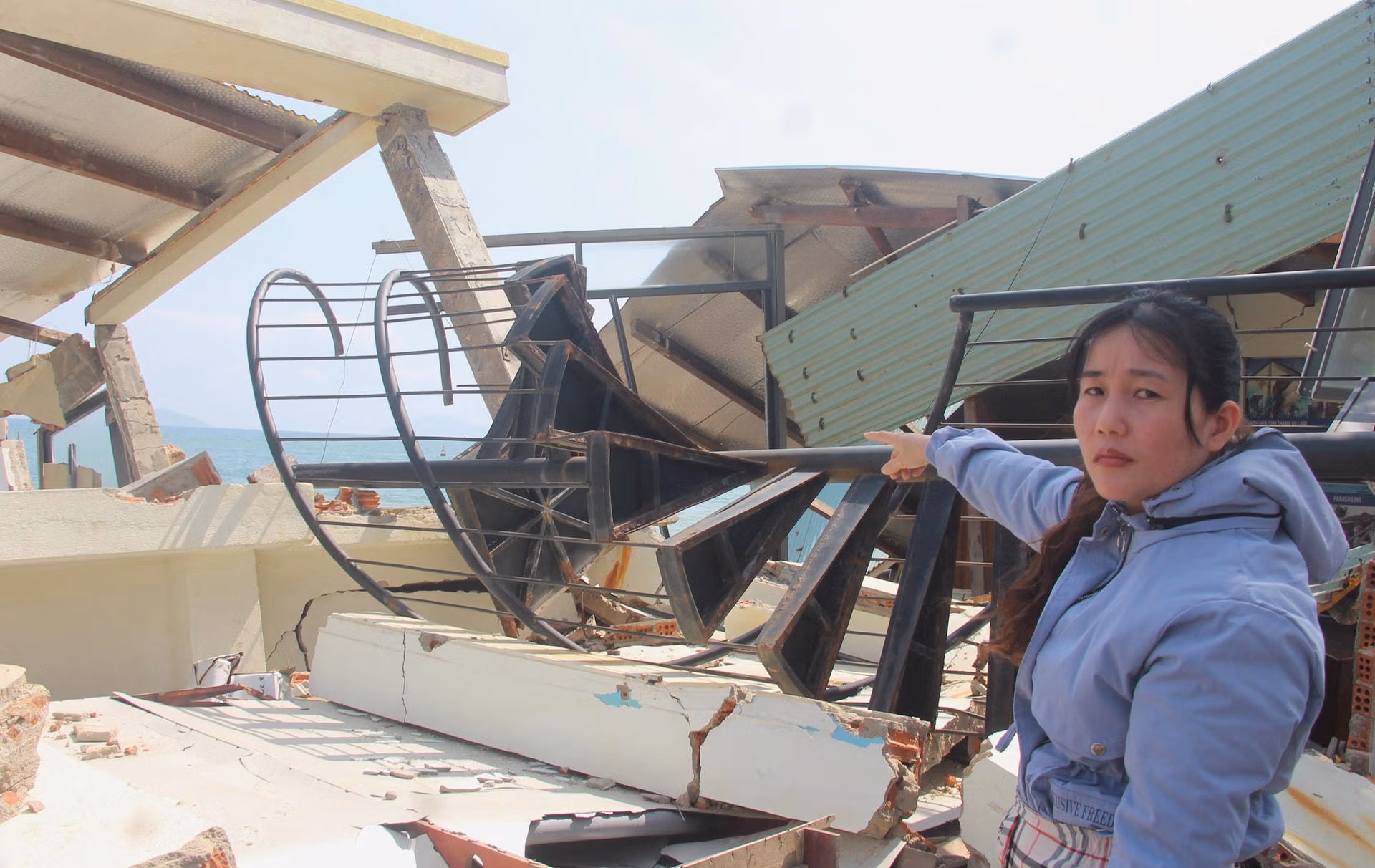 Bà Hường cho hay: “Ngôi nhà này tôi xây dựng gần 400 triệu đồng để cho 4 người trong gia đình tôi sinh sống và kinh doanh buôn bán, tuy nhiên vào cuối tháng 2/2023 sóng biển đánh mạnh gây sập đổ hoàn toàn ngôi nhà. Hiện tại chúng tôi không dám sửa chữa lại ngôi nhà này sợ sóng biển đánh sạt lở hư hỏng trở lại”.