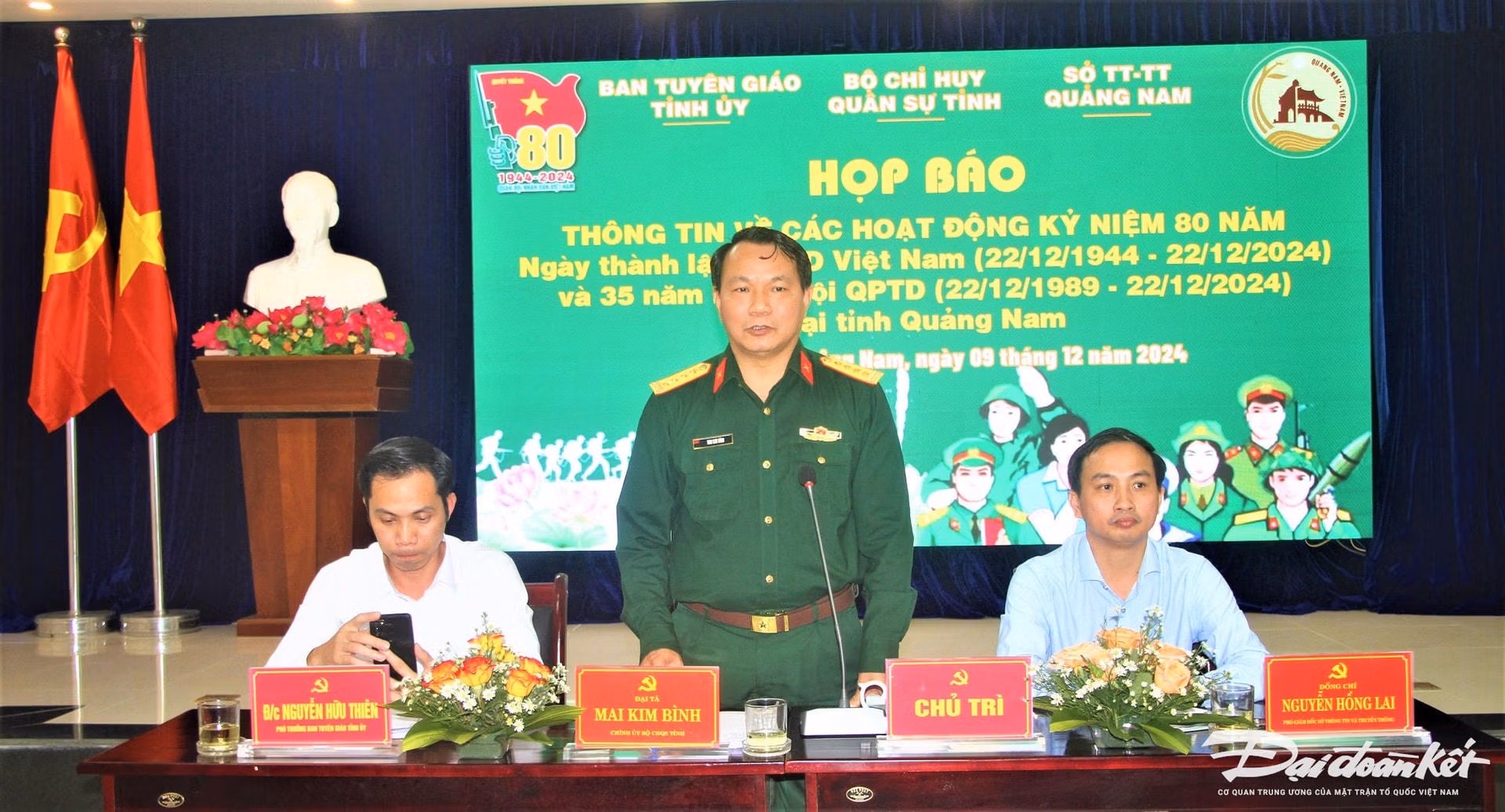Phát biểu tại buổi họp báo, Đại tá Mai Kim Bình cho biết, kỷ niệm 80 năm Ngày thành lập QĐND Việt Nam là dịp để đẩy mạnh các hoạt động tuyên truyền sâu rộng trong cán bộ, đảng viên, chiến sĩ và các tầng lớp nhân dân về chủ nghĩa anh hùng cách mạng, truyền thống đánh giặc giữ nước của dân tộc; quá trình xây dựng, chiến đấu, trưởng thành của QĐND Việt Nam nói chung, truyền thống “Trung dũng, kiên cường” của quân và dân Quảng Nam nói riêng và hình ảnh cao đẹp “Bộ đội Cụ Hồ” thời kỳ mới; những đóng góp to lớn của quân đội trong tham mưu thực hiện nhiệm vụ quốc phòng, bảo vệ Tổ quốc.