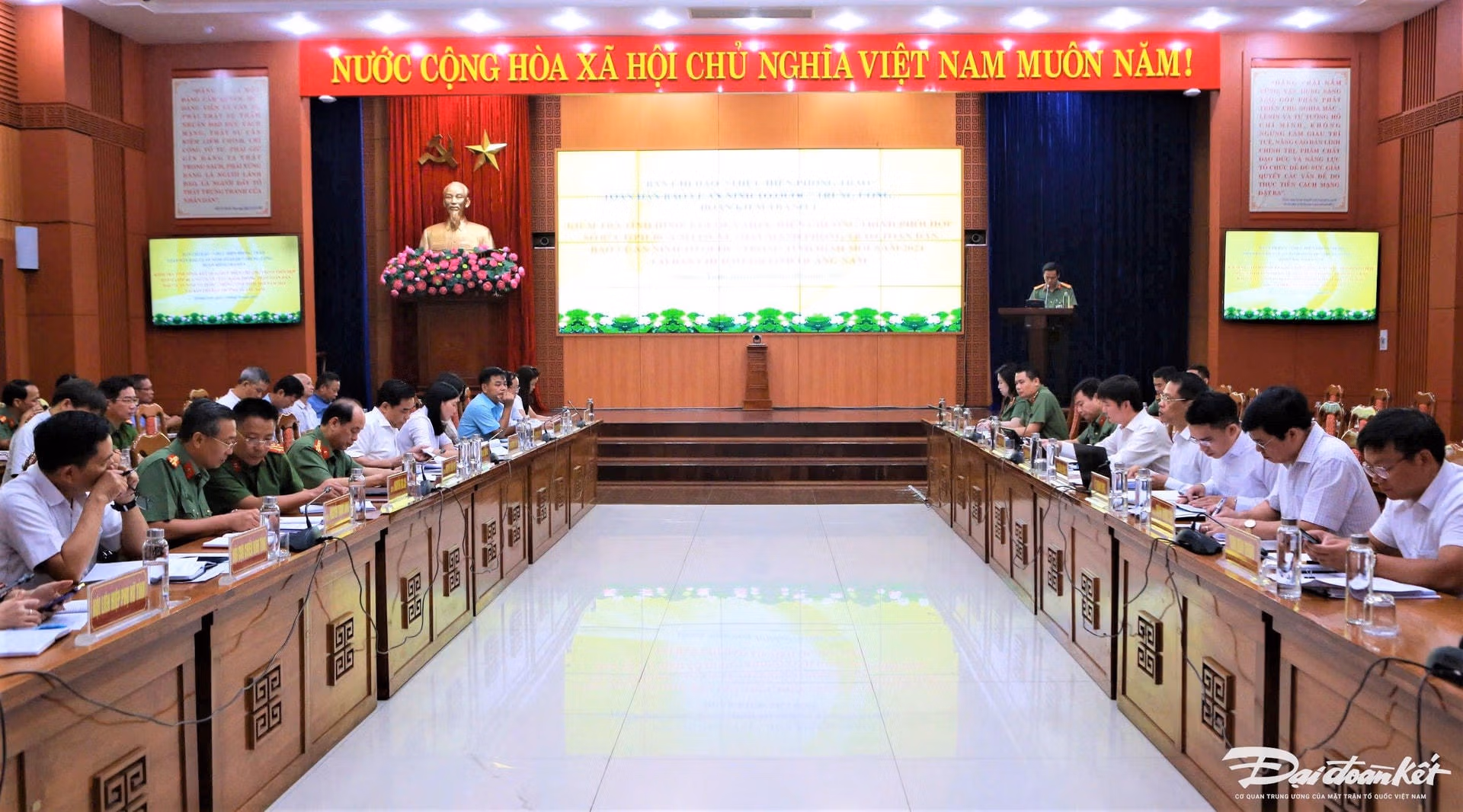 Nội dung buổi làm việc xoay quanh kiểm tra việc thực hiện chương trình phối hợp số 07/CTrPH-BCA-MTTW ngày 17/10/2023 giữa Bộ Công an với Ủy ban Trung ương MTTQ Việt Nam và các tổ chức thành viên về “Đẩy mạnh phong trào toàn dân bảo vệ an ninh Tổ quốc (ANTQ) trong tình hình mới” năm 2024 tại tỉnh Quảng Nam.