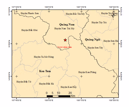Quảng Nam và Kon Tum xảy ra liên tiếp 13 trận động đất trong 2 ngày