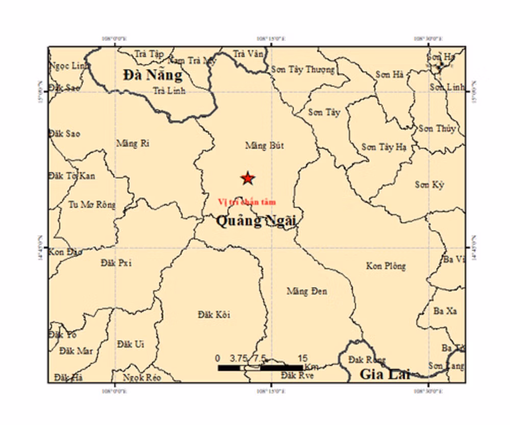 Quảng Ngãi: 6 trận động đất liên tiếp xảy ra tại Măng Bút trong sáng mùng 5 Tết