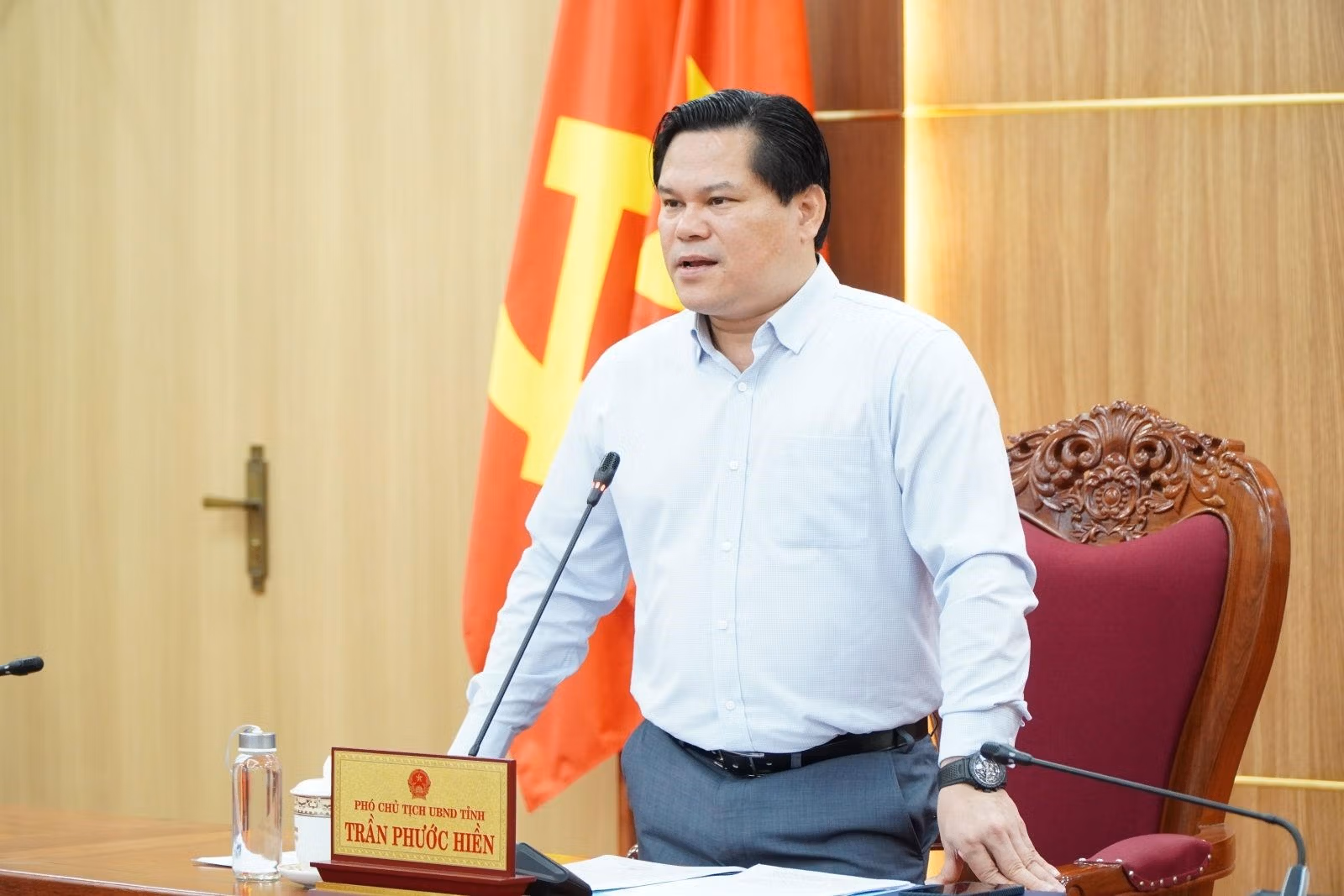 Ông Trần Phước Hiền yêu cầu các đơn vị thực hiện nghiêm chỉ đạo của Trung ương và của tỉnh nhằm bảo đảm nguồn cung xăng dầu phục vụ sản xuất, kinh doanh và đời sống người dân; đồng thời kịp thời phát hiện, xử lý các hành vi lợi dụng biến động thị trường để trục lợi.