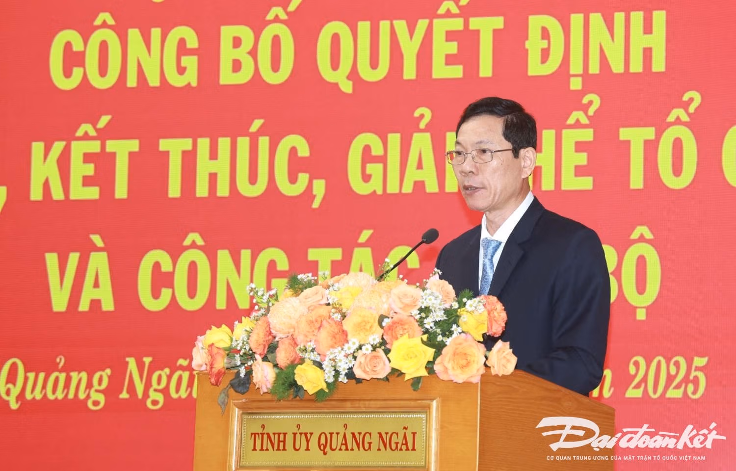 Ngày 4/2, Ban Thường vụ Tỉnh ủy Quảng Ngãi tổ chức hội nghị công bố các quyết định của Tỉnh ủy, Ban Thường vụ Tỉnh ủy về sắp xếp tổ chức bộ máy và công tác cán bộ.