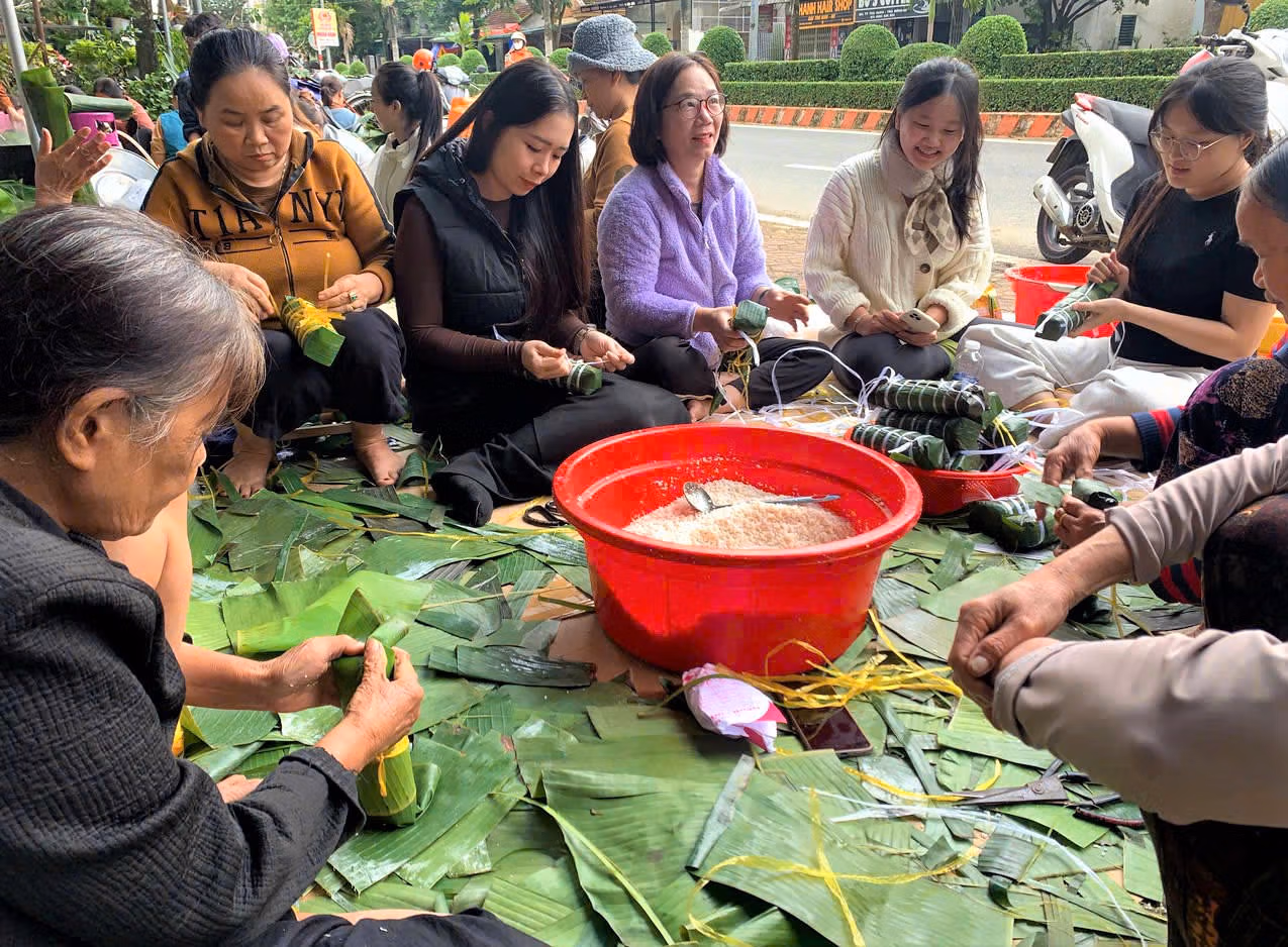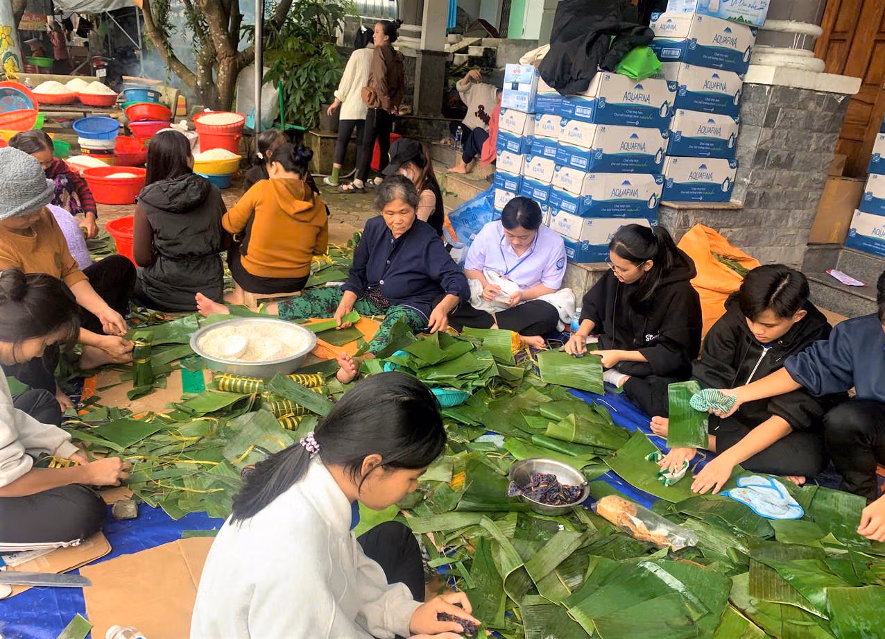 Tại xã miền núi Trà Bồng, tỉnh Quảng Ngãi, người dân cũng chuẩn bị những phần quà, gói từng chiếc bánh chưng, bánh tét để kịp gửi đến đồng bào đang căng mình chống chọi với mưa lũ.